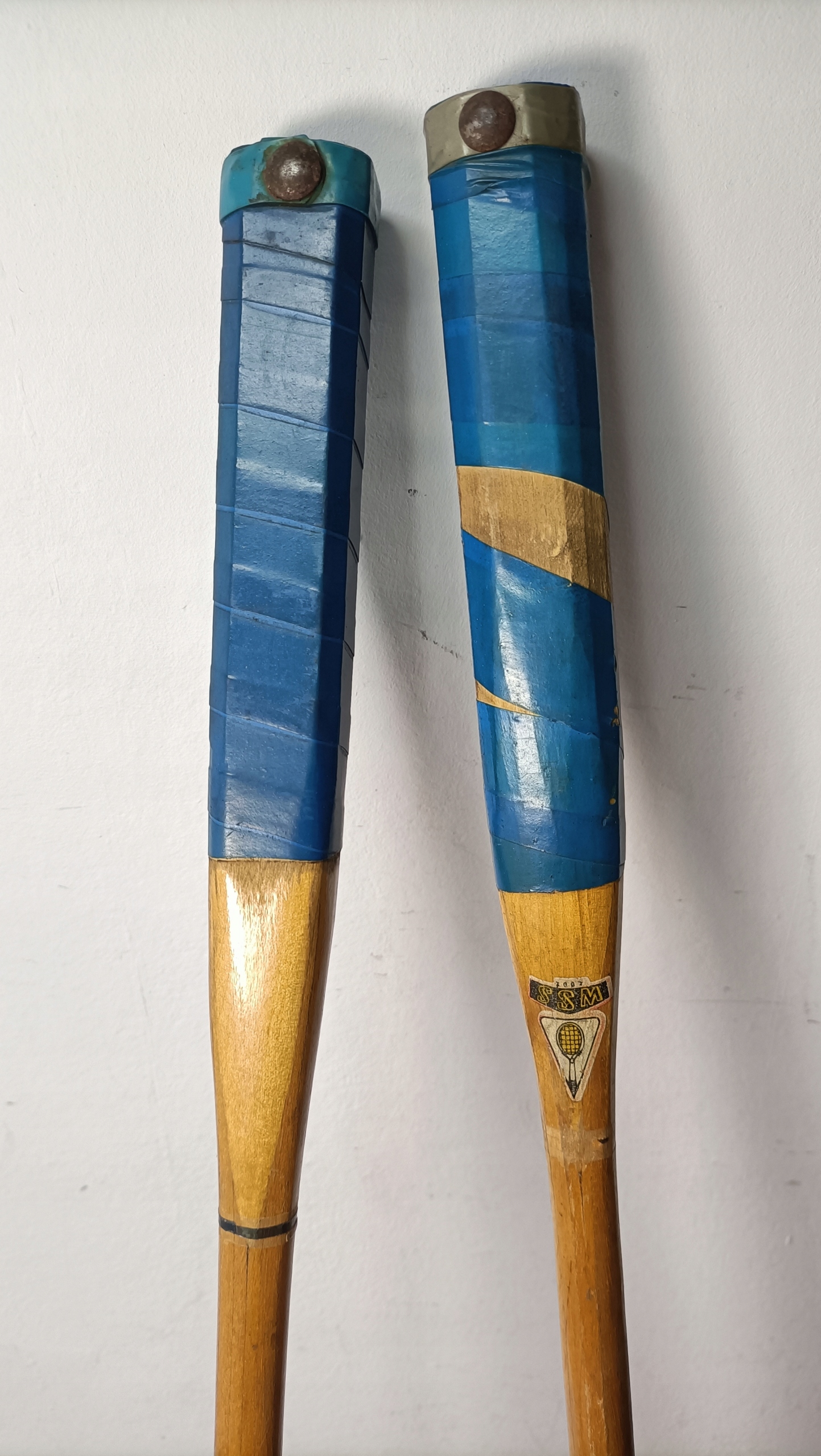 Старі дерев'яні колекційні ракетки для бадмінтону часів Польської Народної Республіки