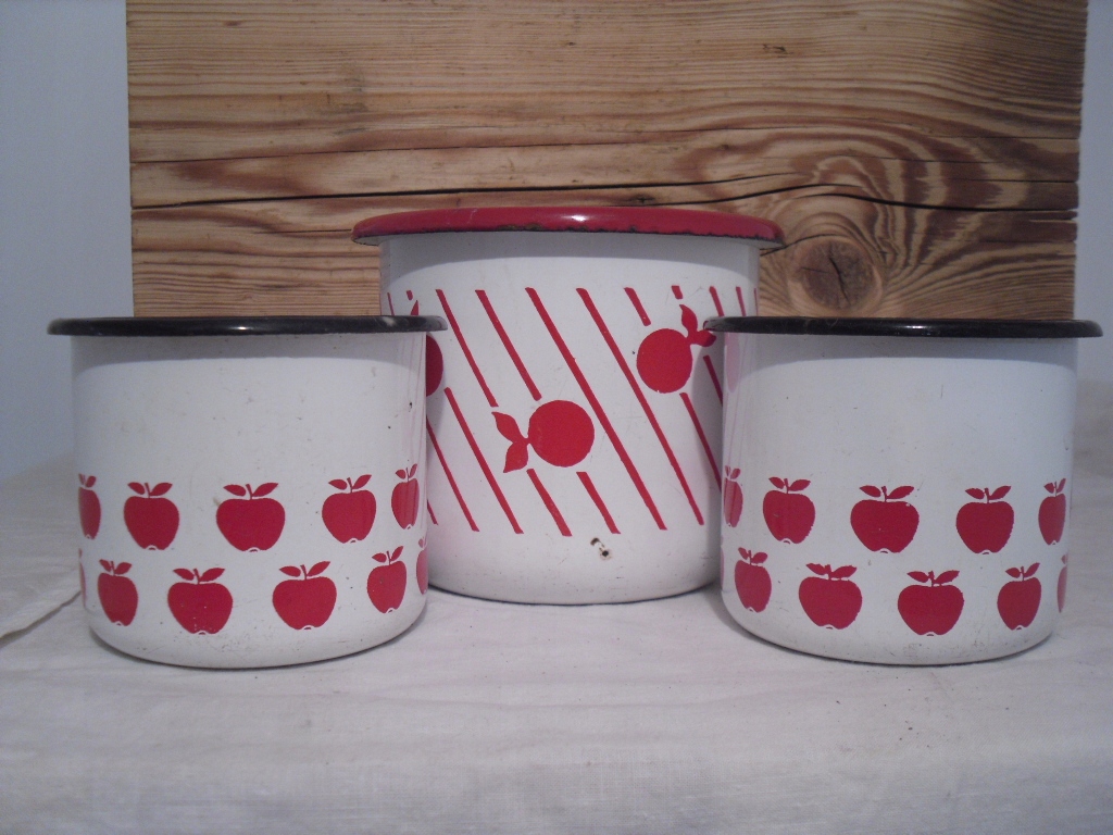 Старі горщики POTS 3pcs чашка емальована кружки білі червоні візерунки
