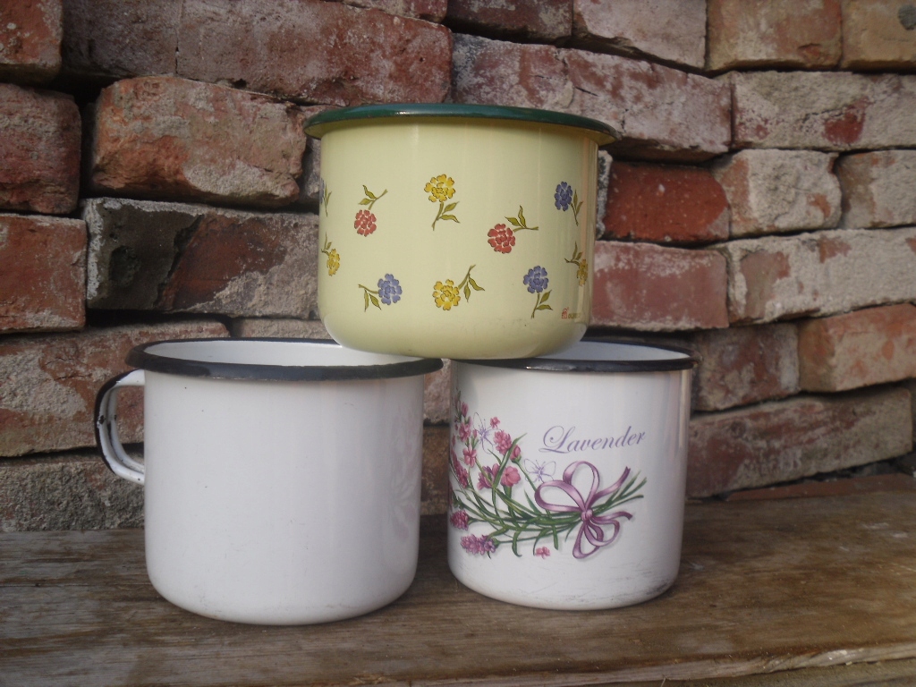 Старі горщики з горщиками 3 шт. Чашка емалі кружок розшифровує прикрашений сад