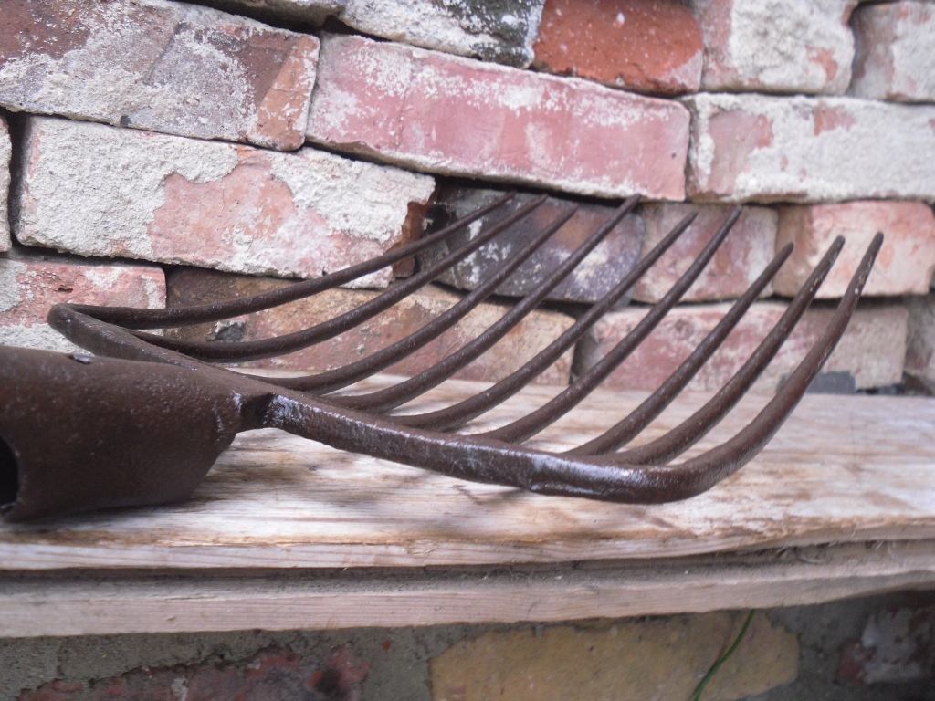Старі ковані картопляні вилки картоплі, що гуртують без кульок картоплі PRL