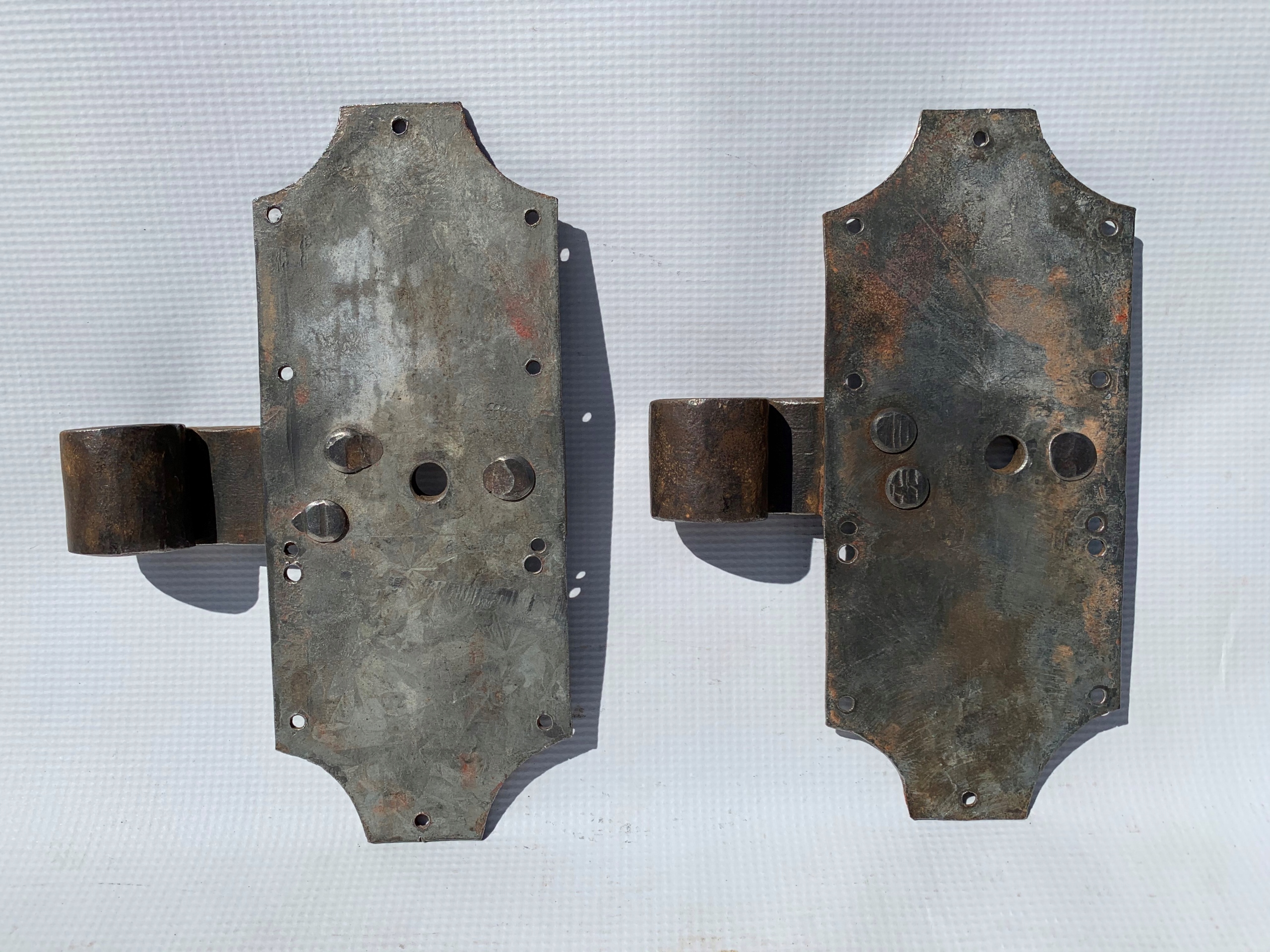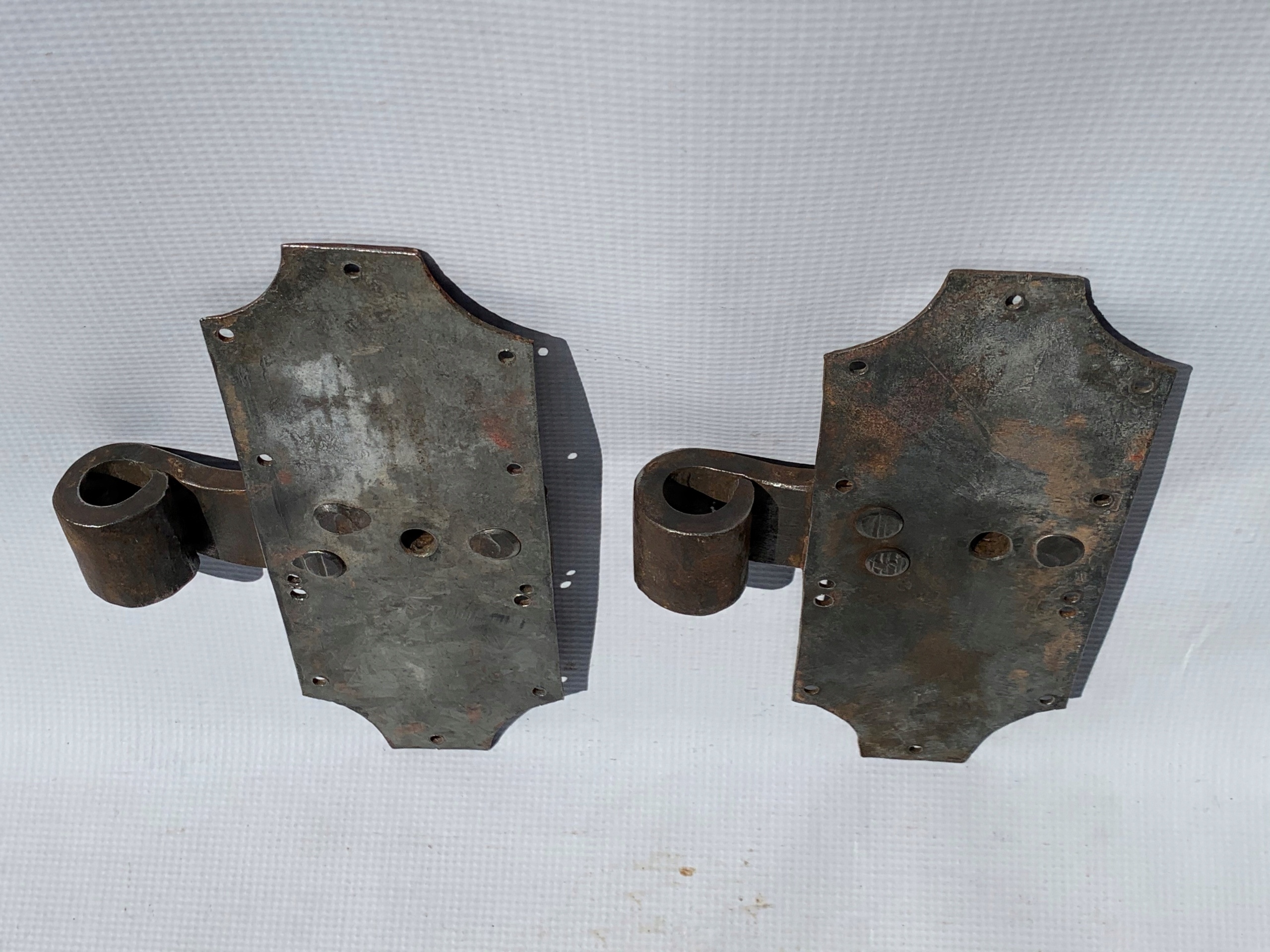 Предметом продажу є комплект петель. Стара ковальська робота. Дуже гарний, високий малюнок - зустрічається рідше. Приблизні розміри: 16 см (довжина) x 23,7 см (висота). Діаметр отвору для підвішування становить приблизно 19 мм. Стан - чистий, як на фото. Якщо ви шукаєте щось оригінальне, цей аукціон саме для вас.