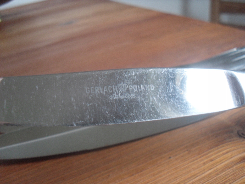 Старі обідні ножі, набір столових ножів, набір із 6 штук, підпис GERLACH POLAND, нержавіюча сталь