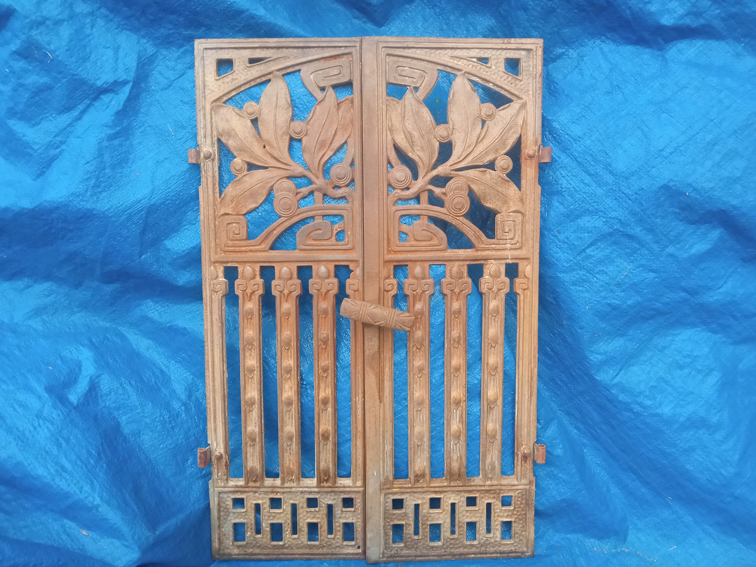 чавун, сліди корозії, на фото видно 2 маленькі дірки, на фото 2 тріщини з обох сторін - нічого не розвалюється, підписи на фото, рама відсутня, висота бл. 58,5 см, ширина двох елементів прибл. 37 см