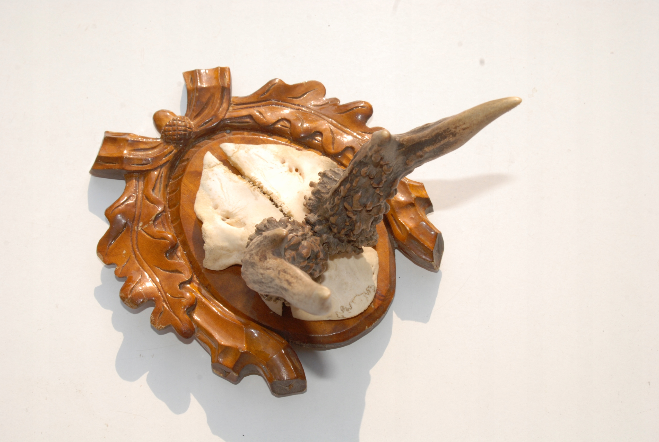 Old antlers deer screenshot horns skull on a beautifully hand -carved base ornament antique collector's monument h1>