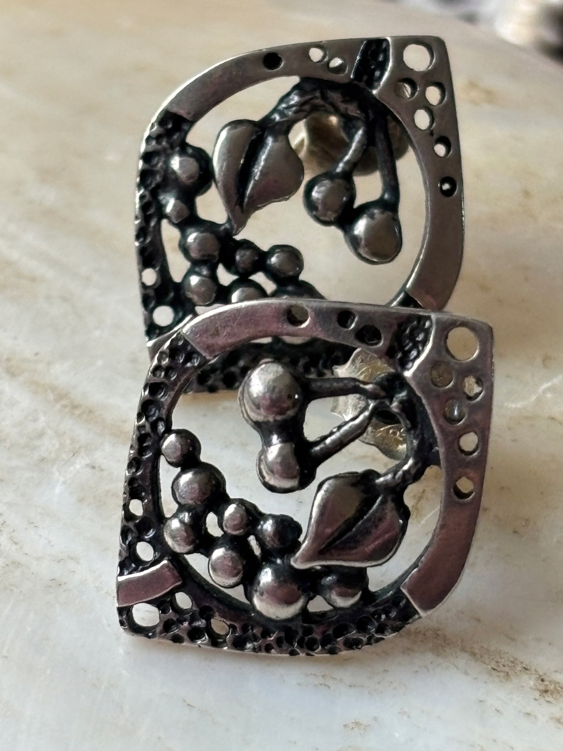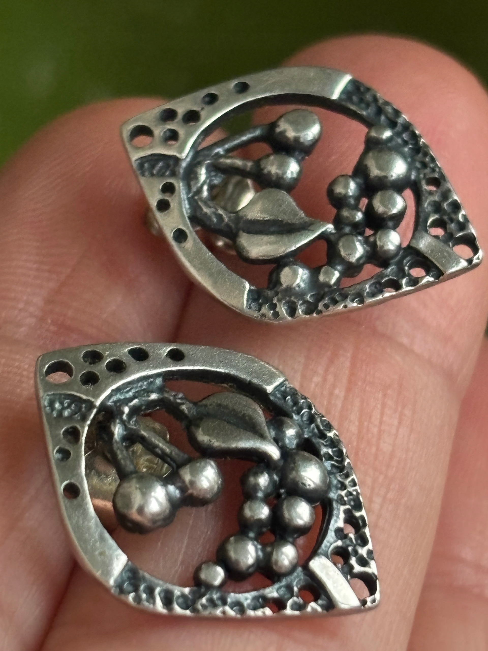 Старі срібні сережки-гвоздики, листочки, кульки, деталь набору PRL