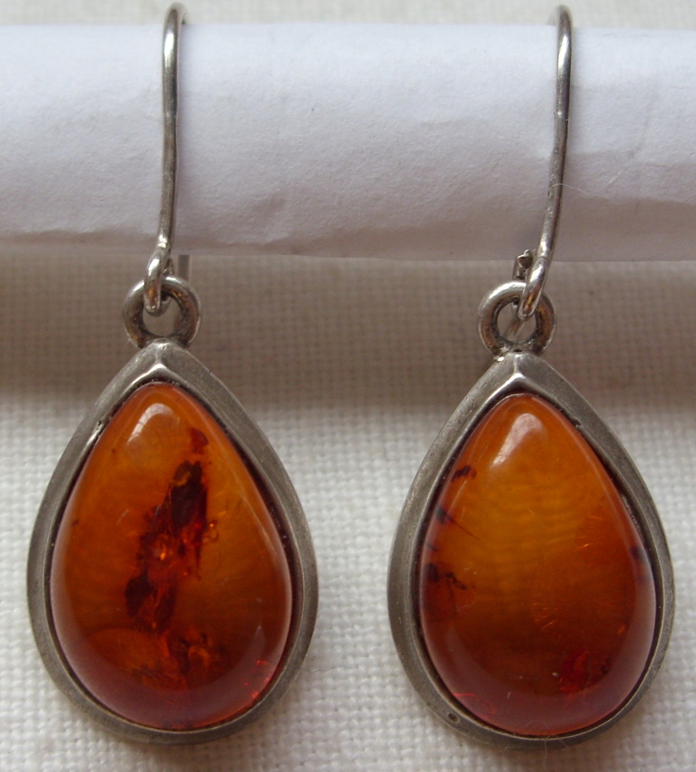 Сережки мають просту конструкцію і є позачасовими. Срібна, проста обстановка бурштинових каменів призначена для того, щоб підкреслити красу природного викопного, а не переповнювати його, щоб виявити природні включення, тобто частинки піску та рослини, вбудовані в бурштинові сльози. Темні, медоносні бурштинові та срібло справді ідеальні. Патина виконала свою роботу тут, додавши чарівність та клас до останніх років. Крім цього, немає навіть найменших пошкоджень обох бурштинів, їх налаштувань, і вушних провідних провідних провідних.