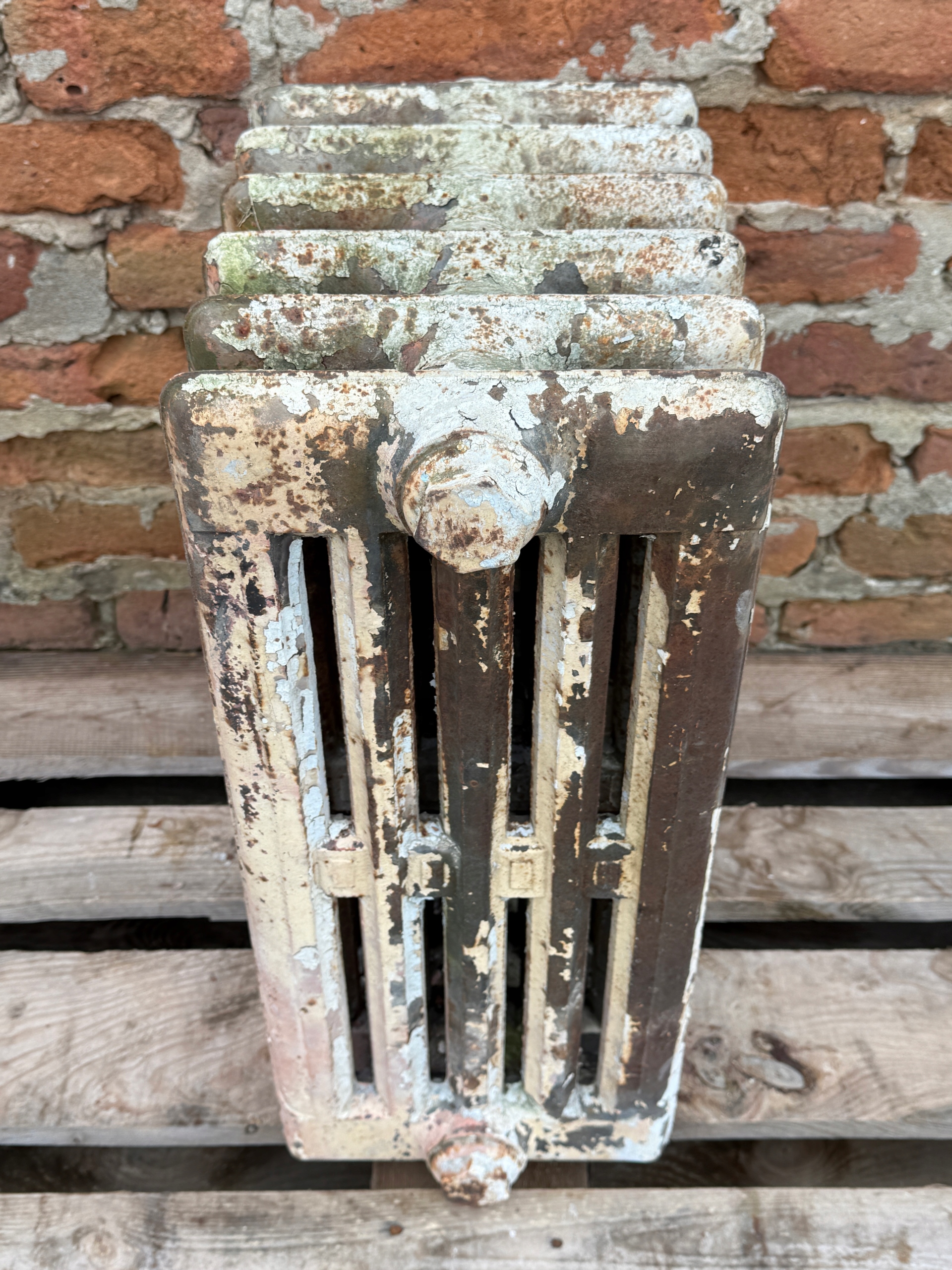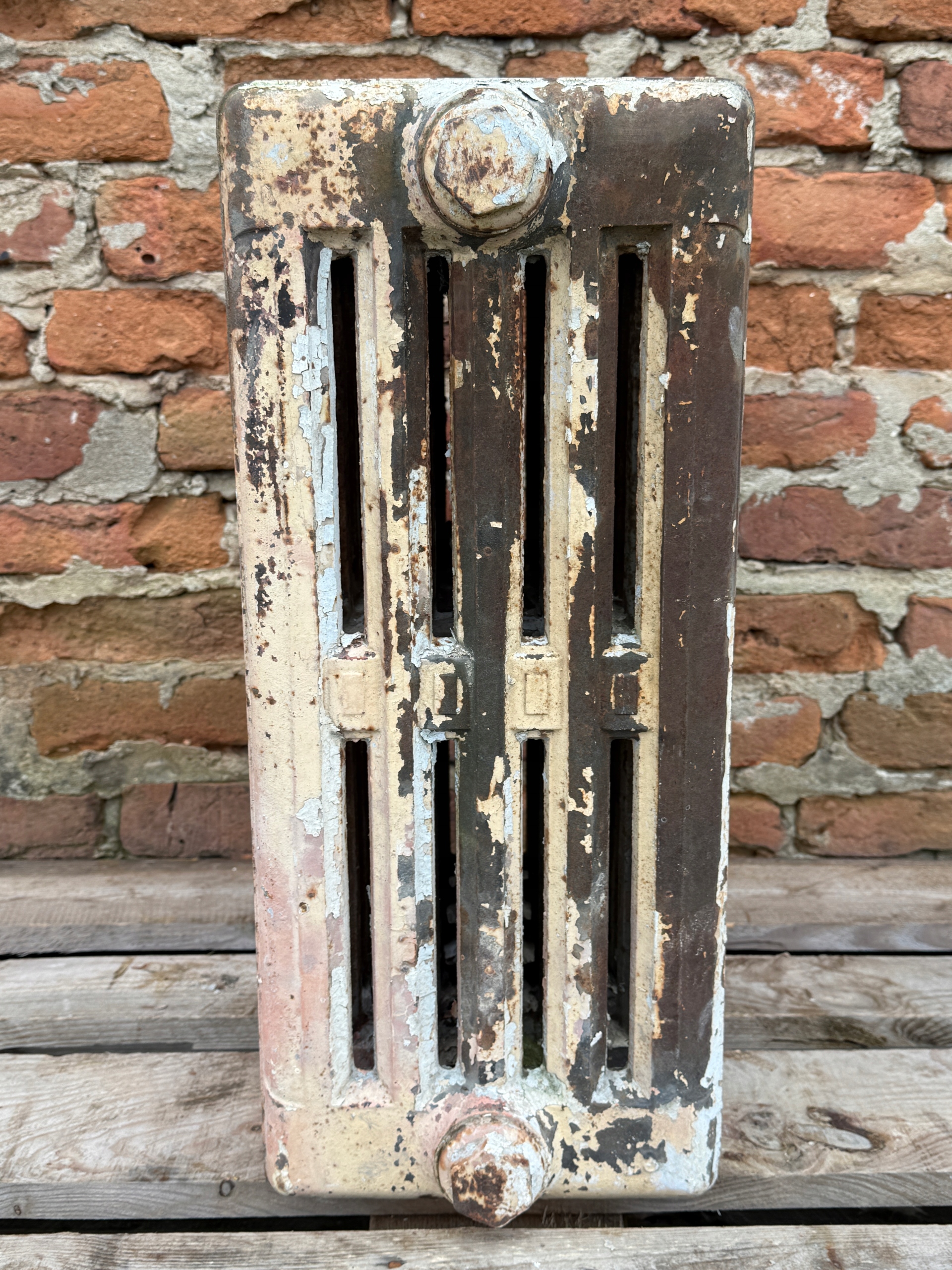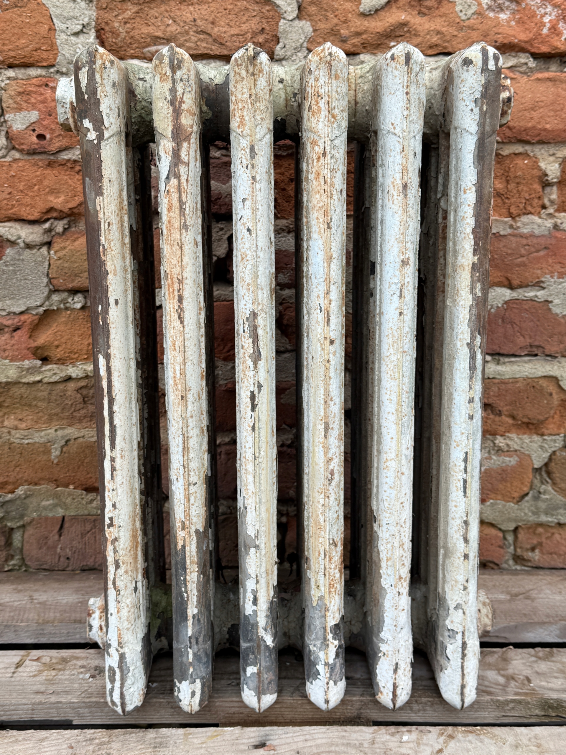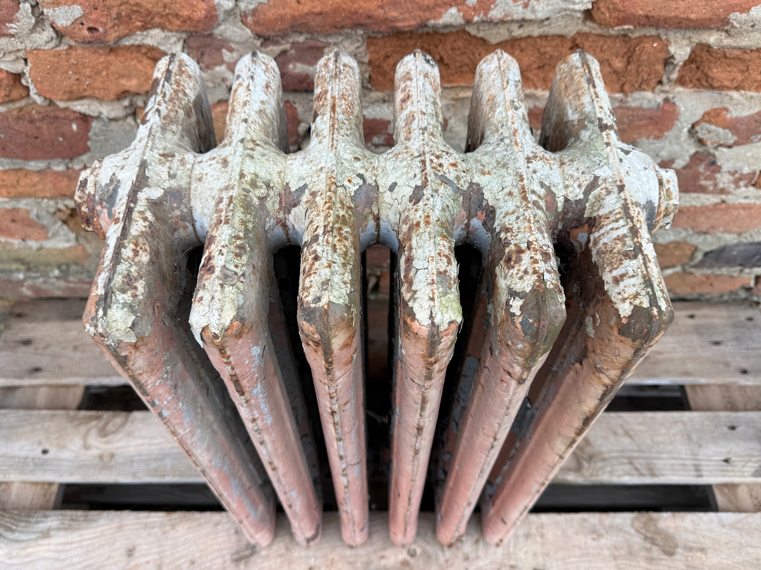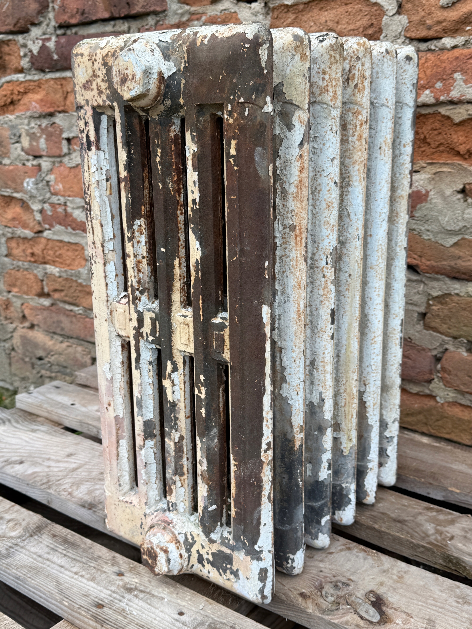 Предметом аукціону є інший старий чавунний радіатор. Цього разу постановка міжвоєнного періоду – стиль АРТ ДЕКО. Цікавий предмет, що складається з 6 ребер.