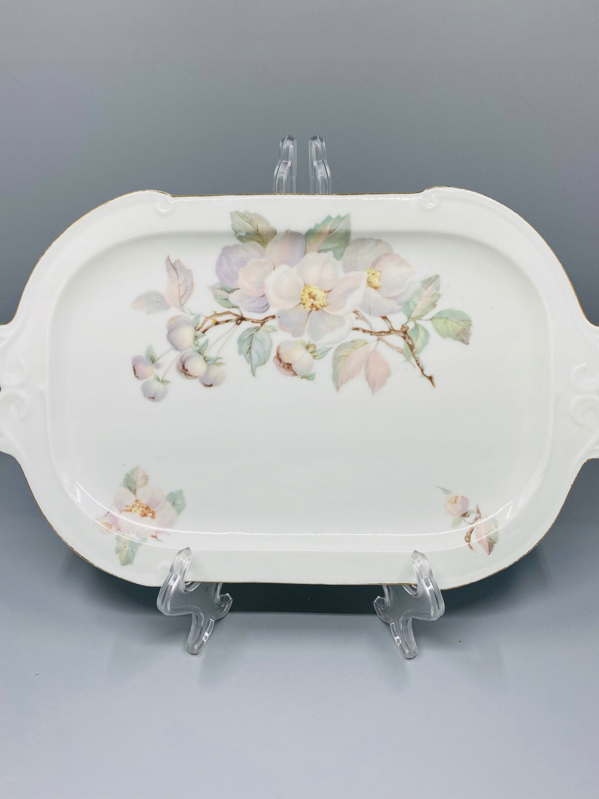 Старий, довоєнний піднос із пастельними яблуневими квітами.