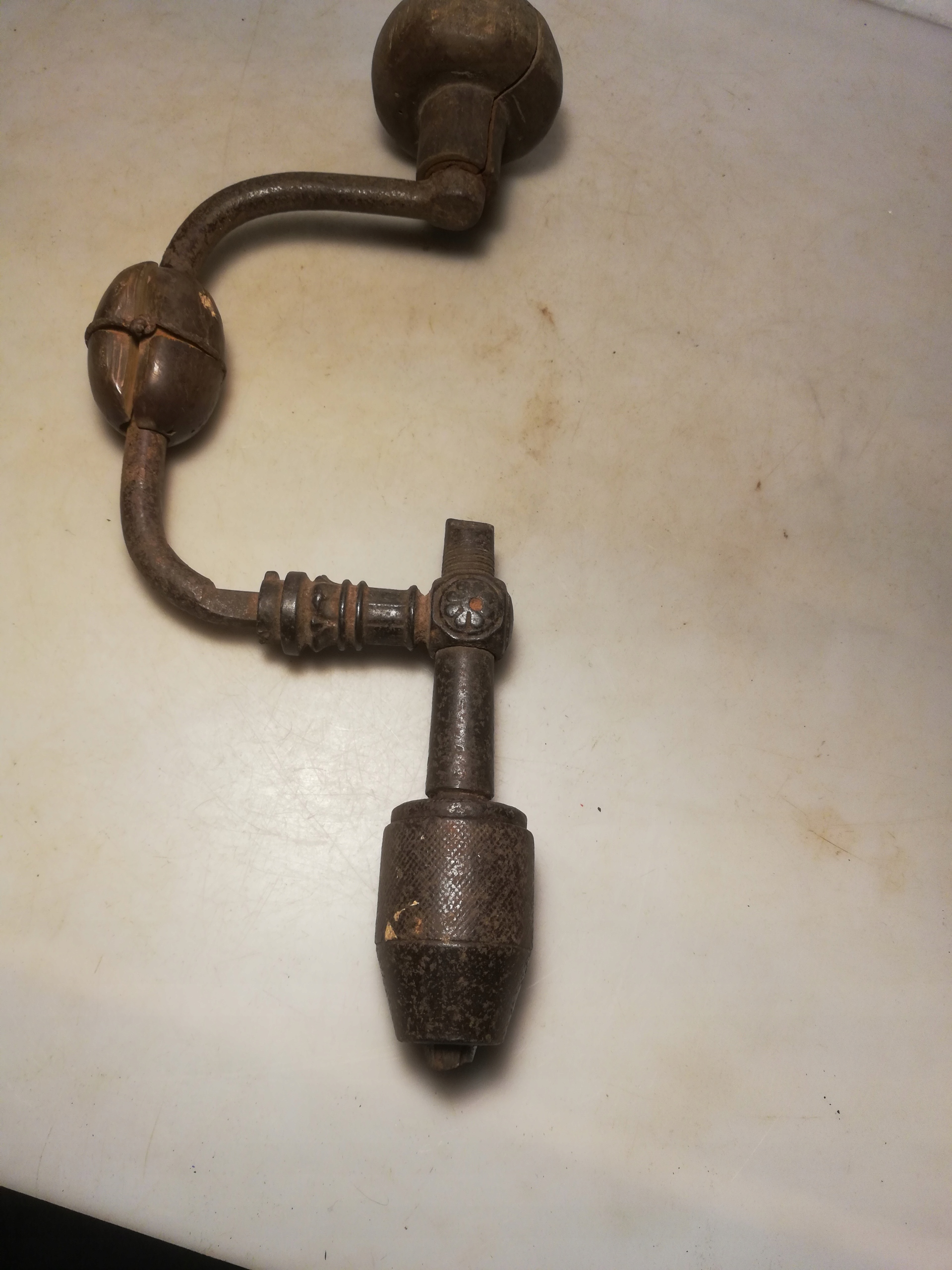 СТАРИЙ, УНІКАЛЬНИЙ, РУЧНИЙ ДРЕЛЬ, СКЛАДНИЙ РУЧОК, з МОНЕТОЮ, 1929 р.