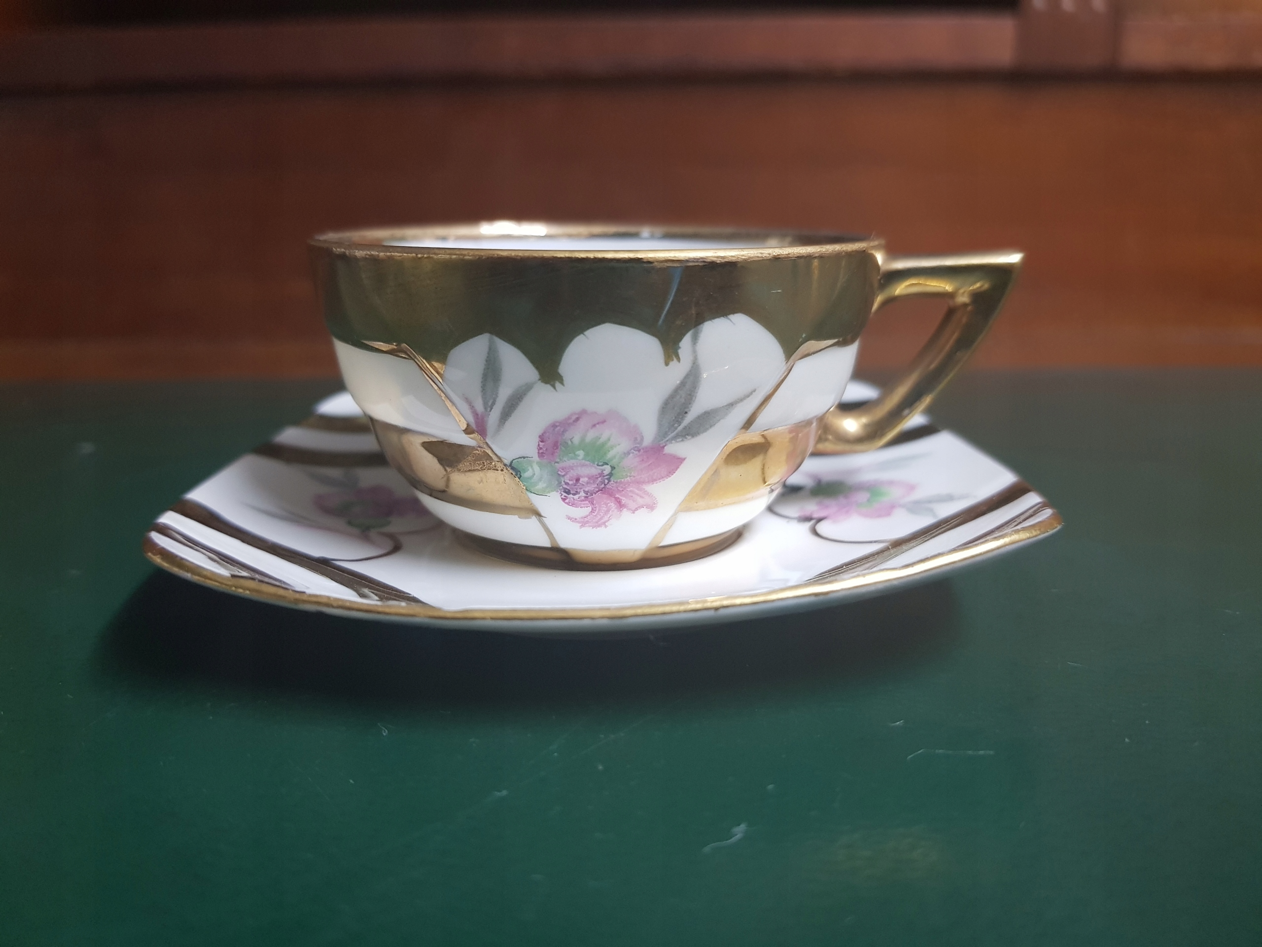 Подібні набори є на інших аукціонах. Але в цьому є блюдце з різними квітковими мотивами на блюдце. b>