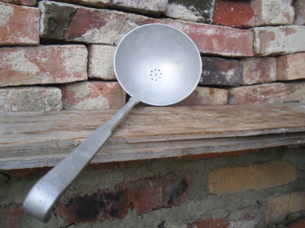 Старий АЛЮМІНІЄВИЙ ківш ДУЖЕ ВЕЛИКИЙ ківш ливник ківш-сіто PRL