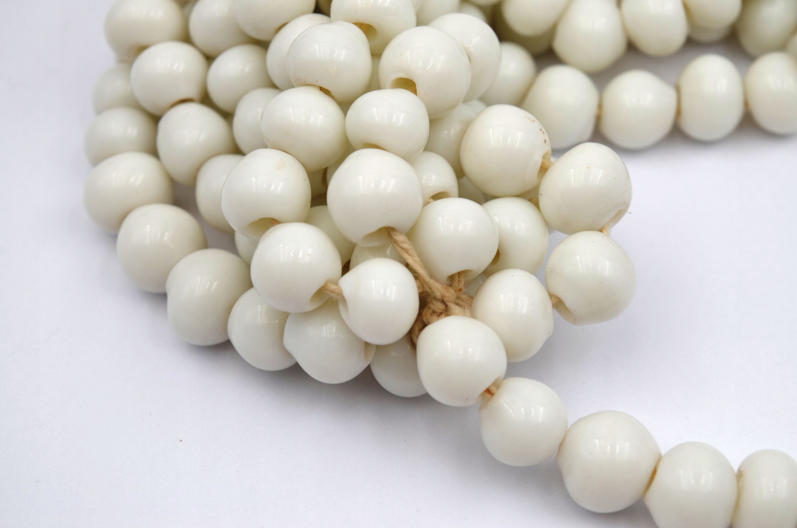 Скляні намистини, білі, непрозорі, кольорове скло.