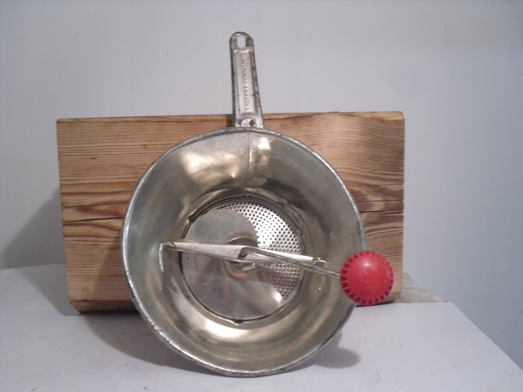 Ласкаво просимо на мій аукціон. На аукціонах я зазвичай пропоную вам речі часів Польської Народної Республіки. На цьому аукціоні я пропоную ОРИГІНАЛЬНЕ старе фруктове або овочеве пюре, описане як BREVETE SGDG, ЗРОБЛЕНЕ У ФРАНЦІЇ, і опис на ручці GUILLOUARD A NANTES. Склоочисник ефективний і працює, виготовлений з листового металу з пластиковими аксесуарами. Всередині є сліди використання у вигляді невеликих подряпин і невеликих змін кольору, зовні є більше ознак використання у вигляді подряпин, невеликих вм'ятин і зміни кольору /див. фото/. Зрозуміло, очищений і вимитий, нічим не змащений. /див. фото/.