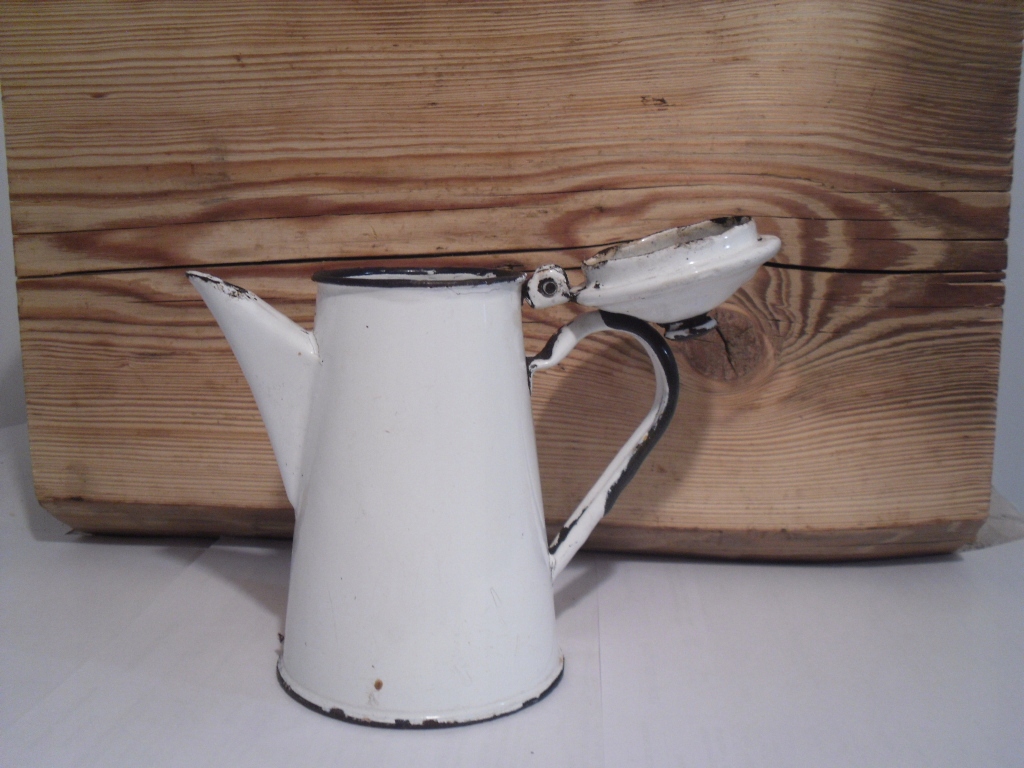Старий чайник, білий емальований чайник з кришкою, садовий ПРЛ