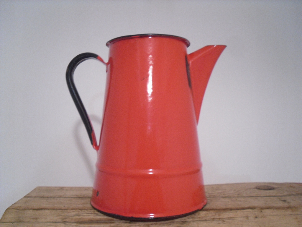 Ласкаво просимо на мій аукціон. На аукціонах я зазвичай пропоную вам предмети з періоду PRL. На цьому аукціоні я пропоную оригінальний старий емальований і красивий глечик, чайник, чайник у дуже приємному червоному / червоному кольорі, білий без знебарвлення з чорними доповненнями. Чайник у хорошому стані поведінки Кілька емалі, стилів, всередині внизу чорних крапок, див. Фотографії. Чайник був очищений нічим. Приємний і розбірливий підпис Олкуш. /див. Фотографії /. P>