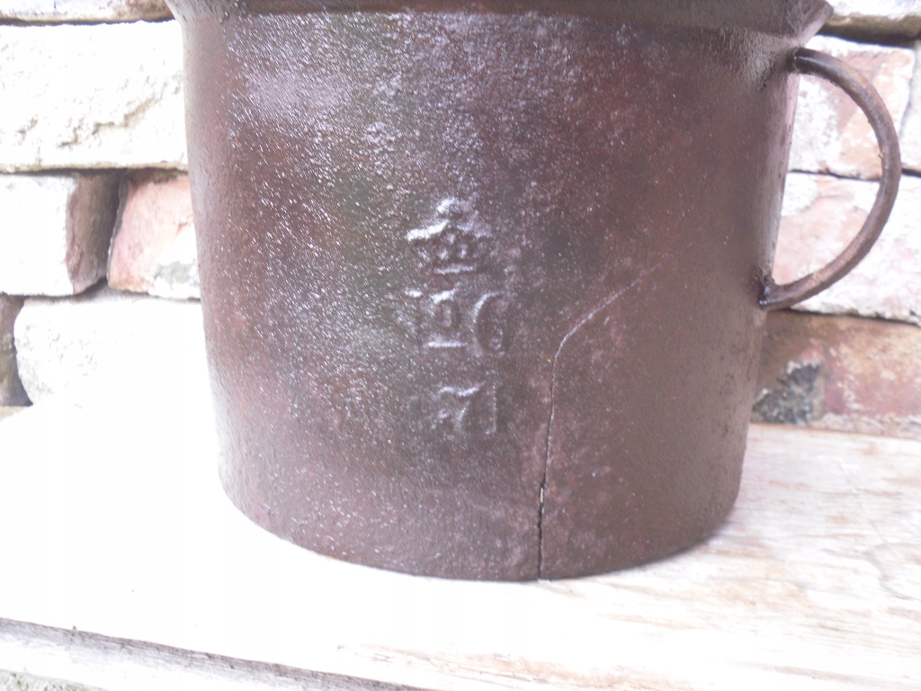 Ласкаво просимо на мій аукціон. На аукціонах я зазвичай пропоную вам речі часів Польської Народної Республіки. На даному аукціоні пропоную ОРИГІНАЛЬНУ старовинну чавунну каструлю, покриту емаллю зсередини та зовні, очищену та збережену від корозії. Оригінальний горщик з однією ручкою. Нажаль горщик пошкоджений та тріснутий (див. фото). Горщик має гарний підпис. Дивіться фото.