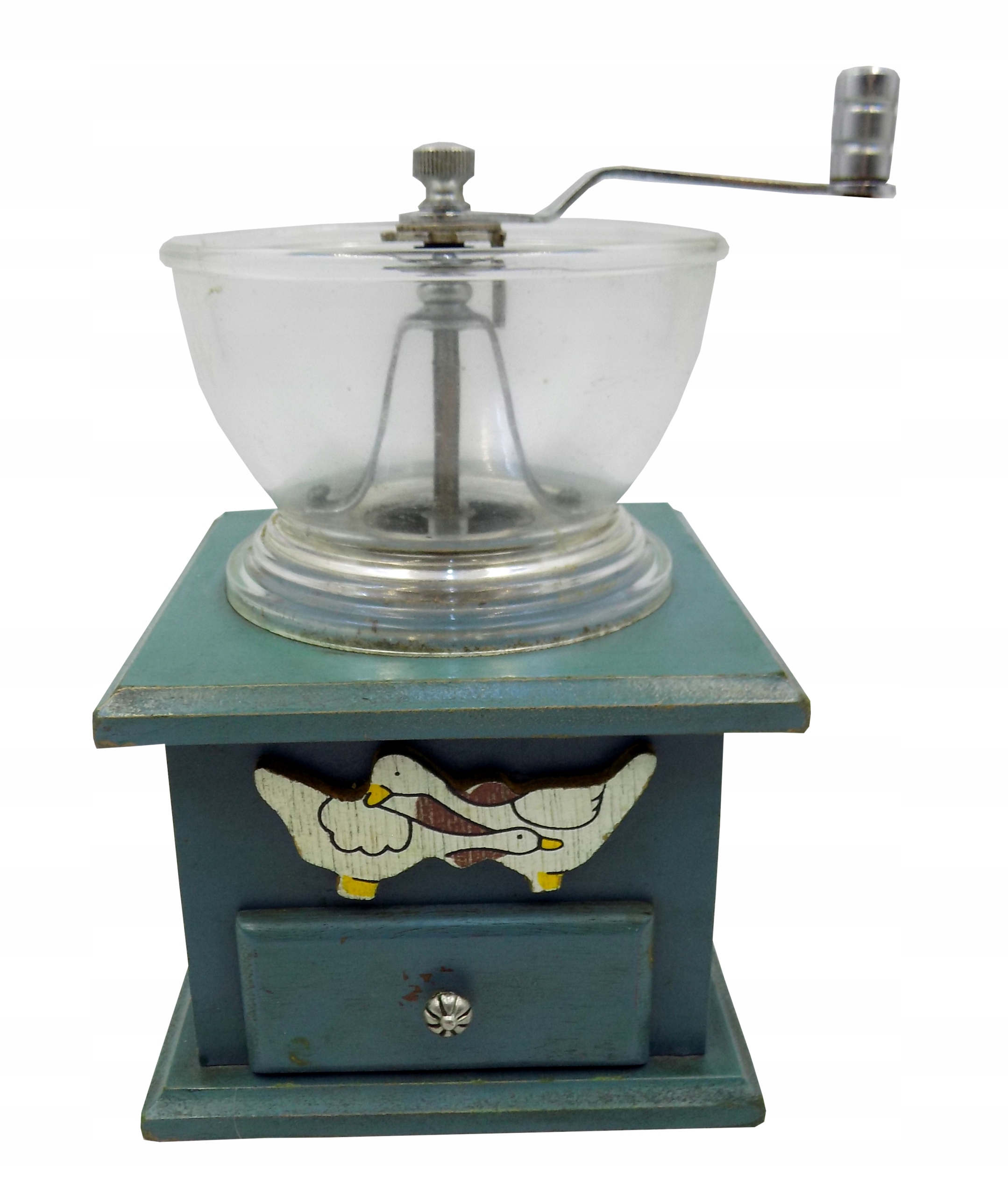 Стара дерев'яна м'ясорубка з висувною шухлядою часів Польської Народної Республіки. Стан видно на фото. Розміри; висота 19,5 х 15 х 12,5 см
