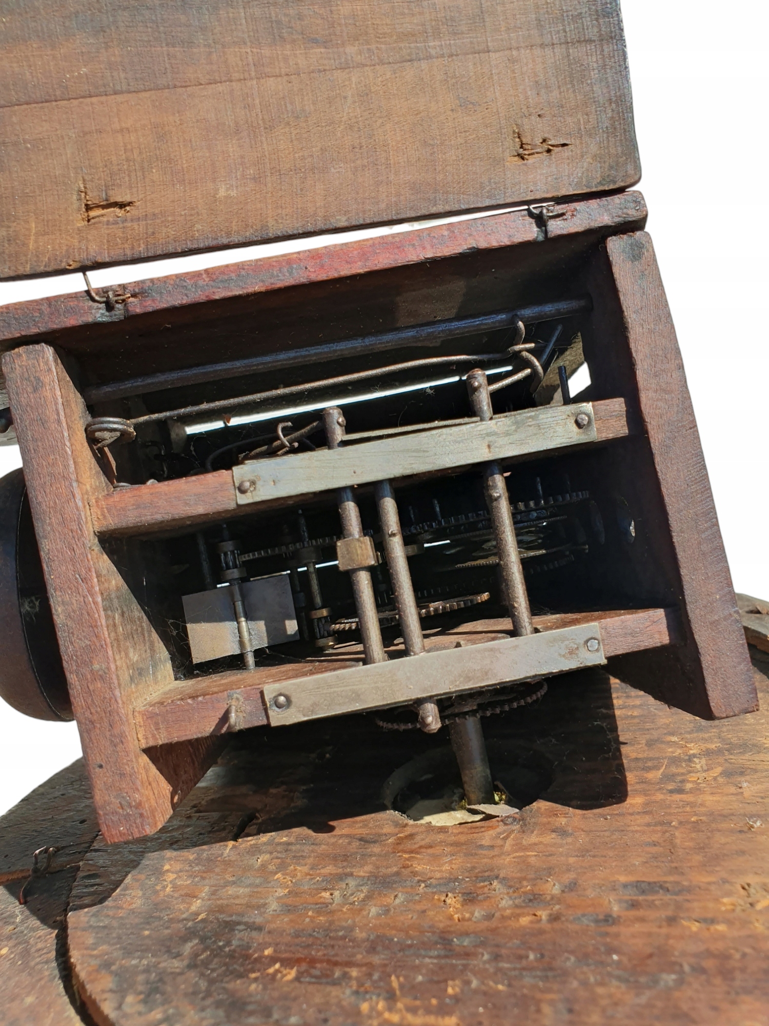 - Видимі сліди багаторічної експлуатації: тріщини, потертості та дефекти дерева, патина на механізмі.