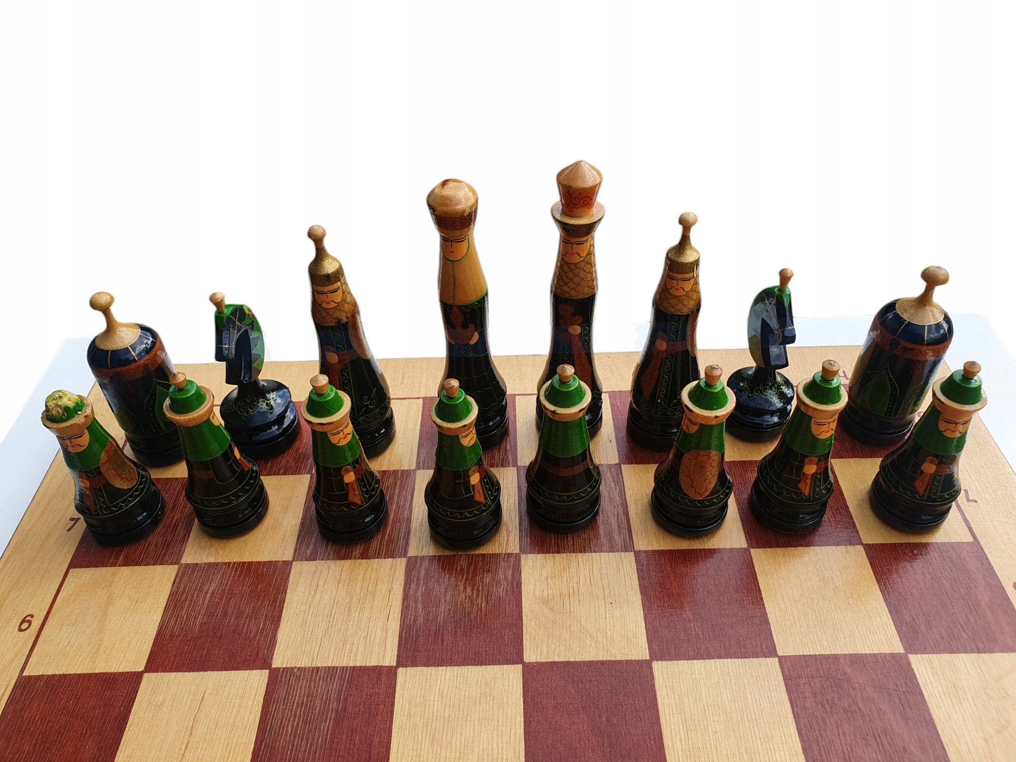 Старі дерев’яні шахи - ручна ручна та пофарбована - 1950 -ті роки/60. - Татарський стиль - унікальний колекціонер