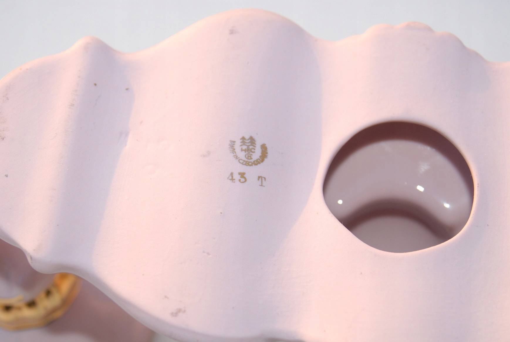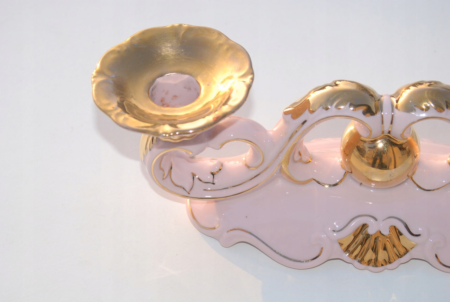рожевий порцеляновий, який отримується завдяки додаванням золота. Прекрасна форма, натхненна продуктами Art Nouveau, прикрашена незвичайними, красивими, виразними рельєфами. Закінчивши позолотою на контурах. Продайте в тому ж стані, що ви бачите на фотографіях