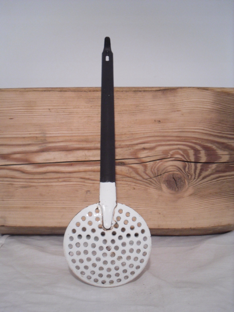 Старий емальований друшляк, друшляк, черпак, ситечко, житло, кухня часів ПНР, 2 емалі.