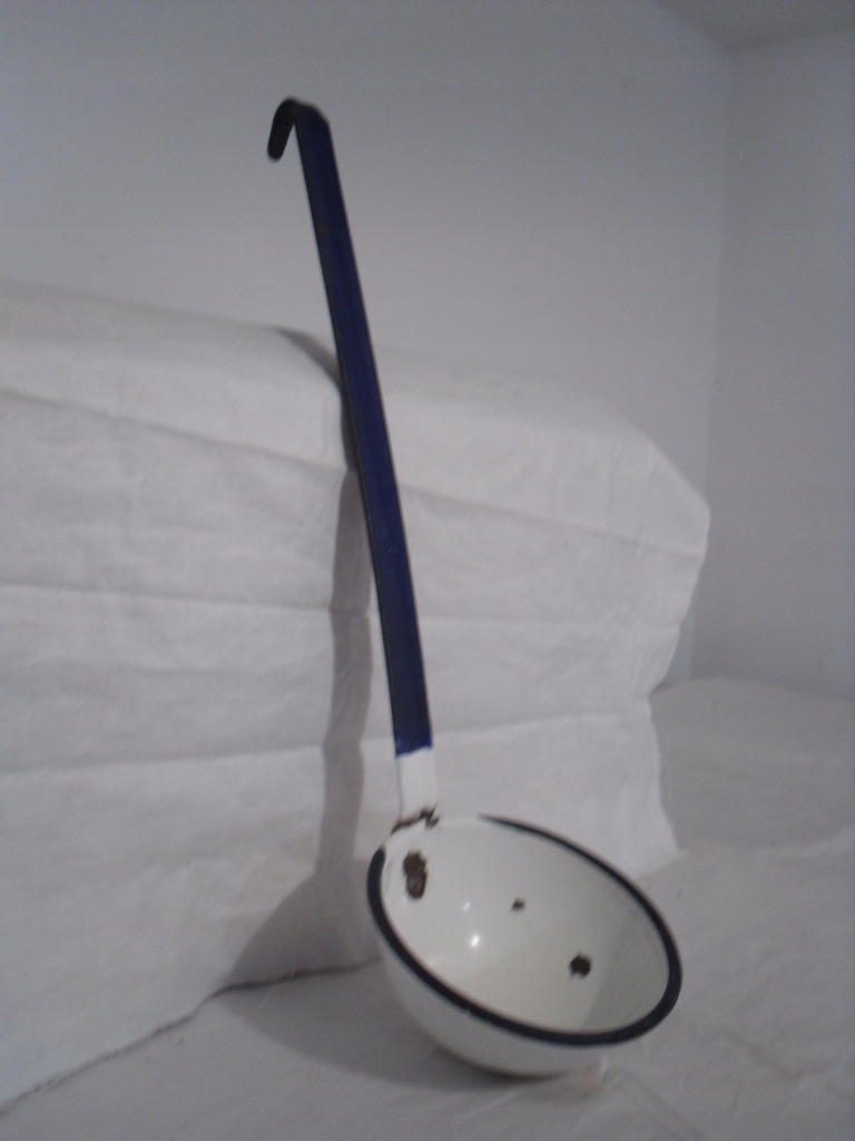 Старий емальований ківш, ложка, черпак, черпак, гарний розпис 1