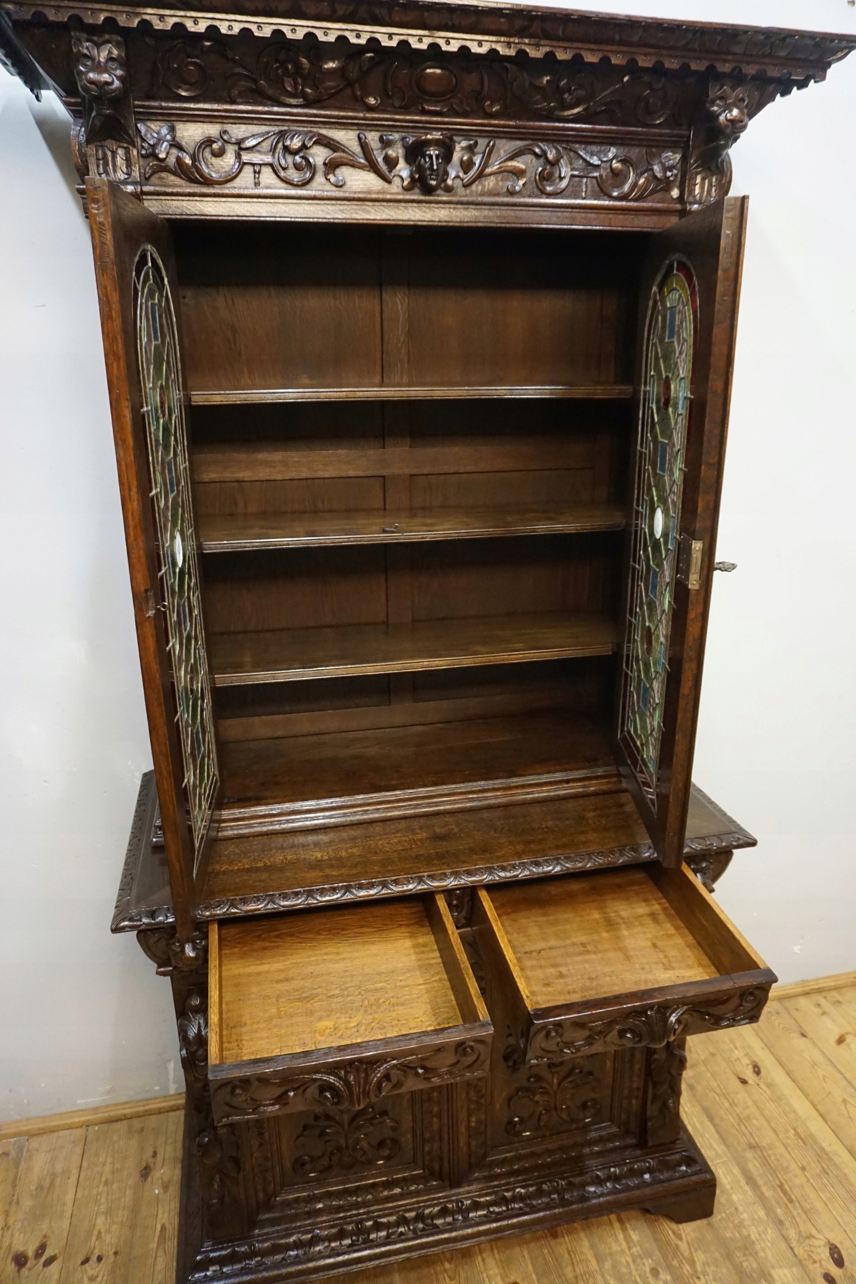 Старий фігурний сервант із вітражами оригінальний 1820-1850 ..