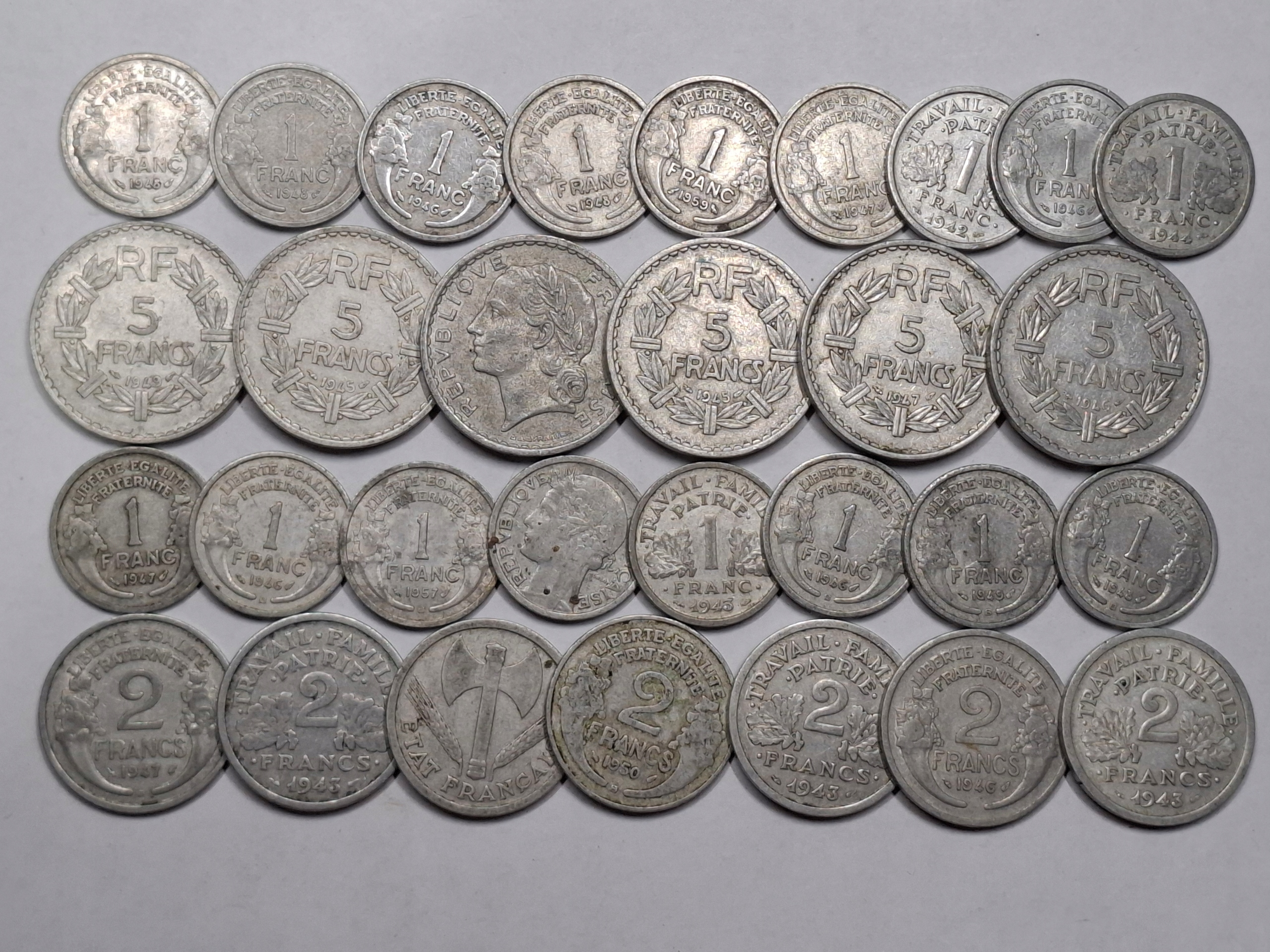 Старий Франція 30 монет від 1 до 5 франків Цікава суміш -nr0521