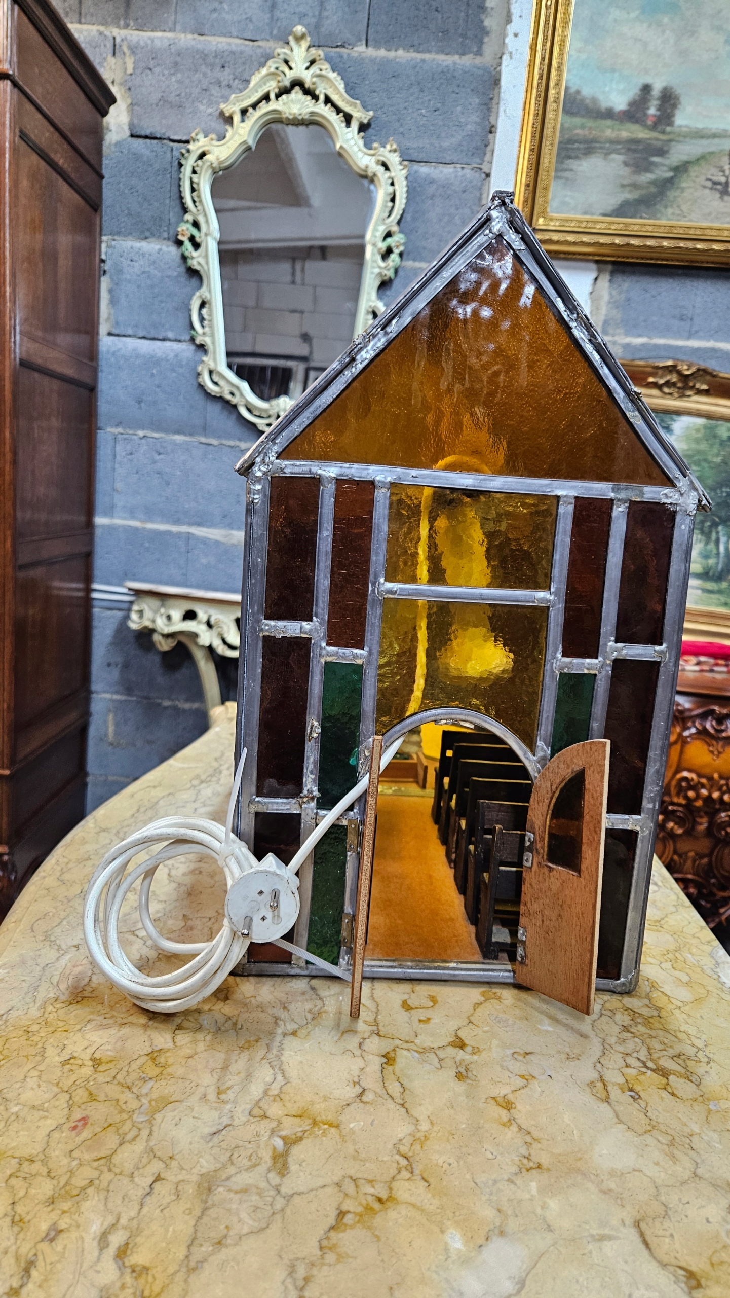 Старий гарний світильник ручної роботи, церковні вітражі. -Феленка