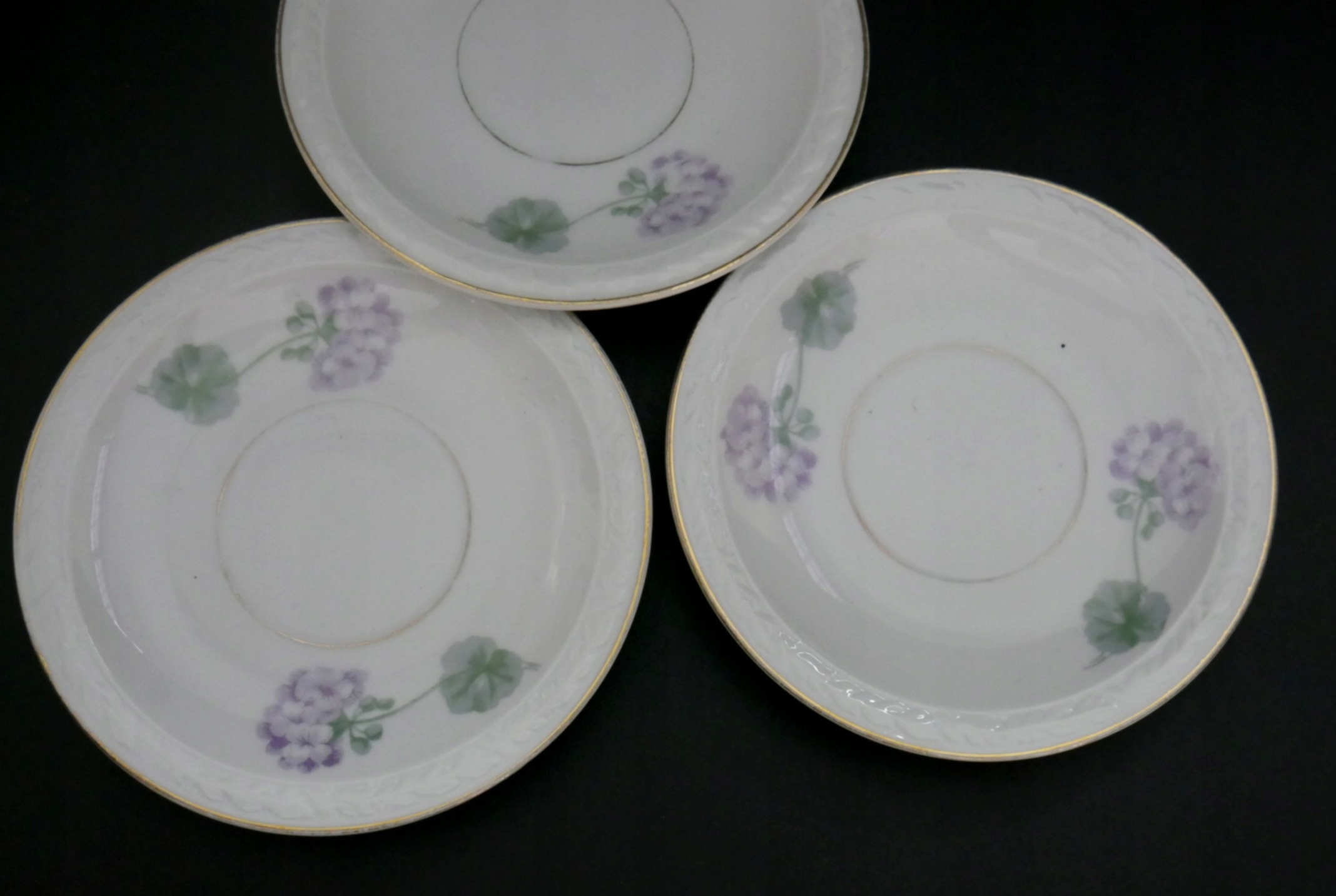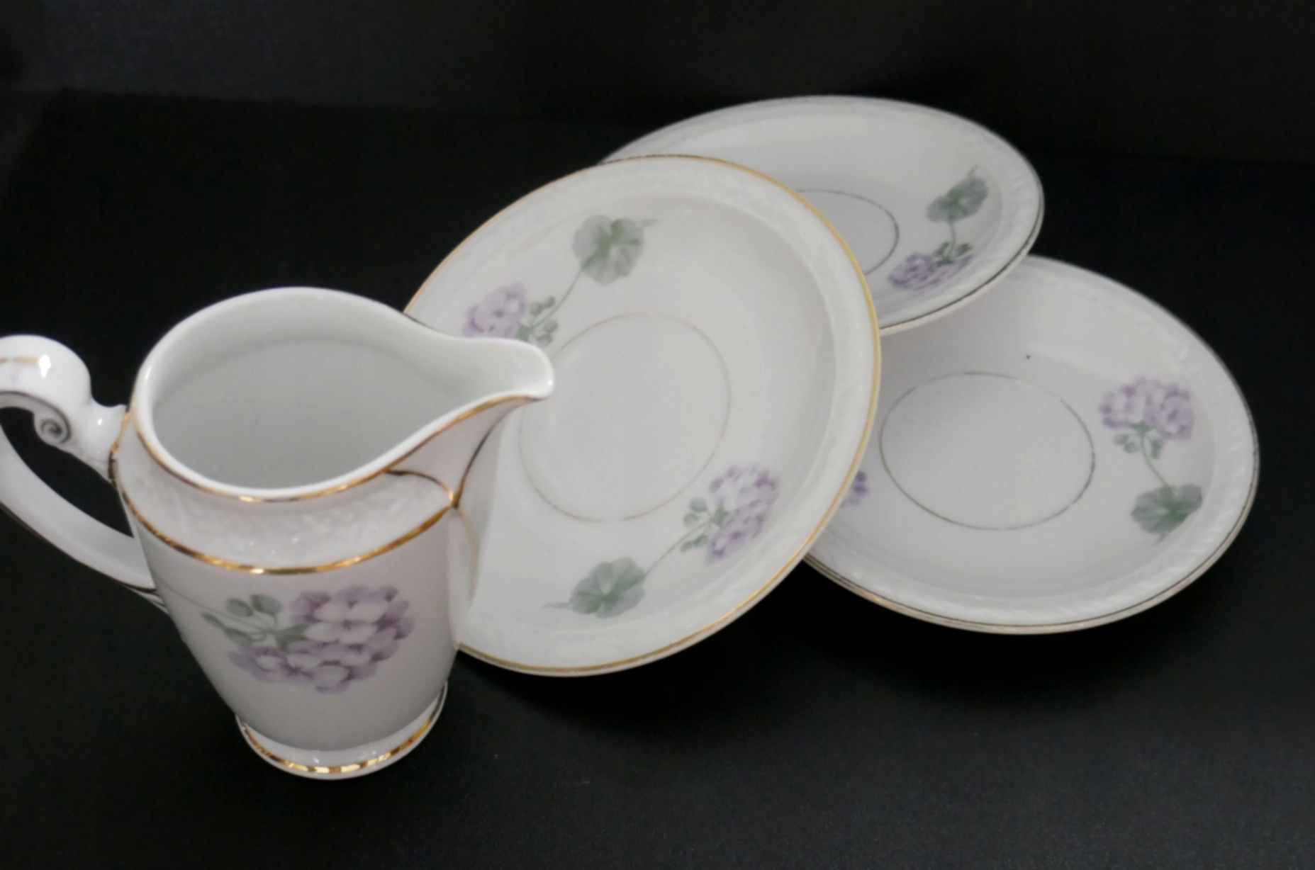 біла порцеляна, масивна, рельєфи по краю глечика для молока та блюдець, позолота