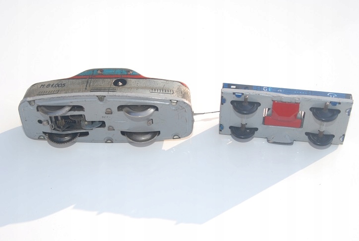Стара іграшка, жерстяна машина, заводна машина з причепом, колекційний антикваріат, PRL, унікальний