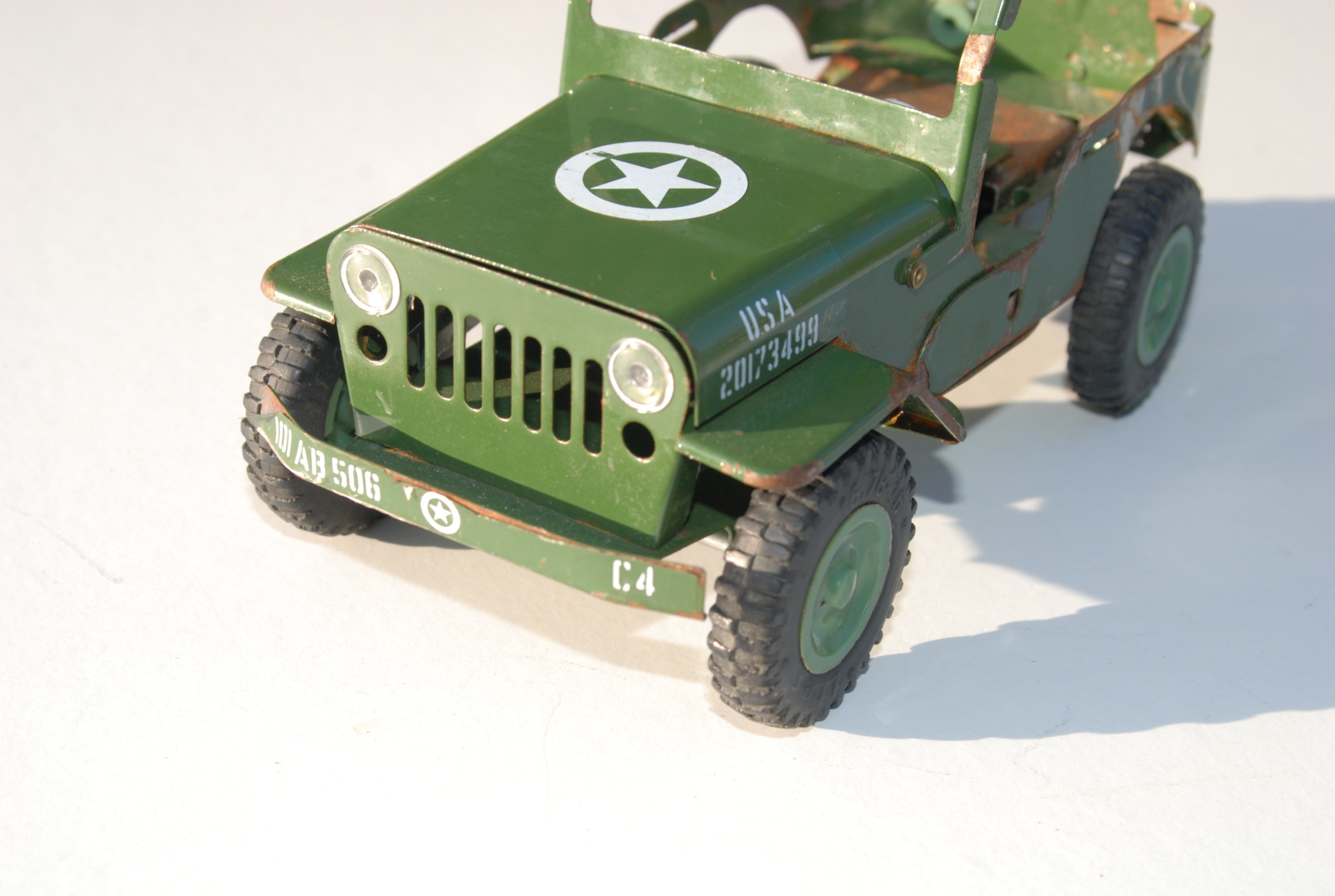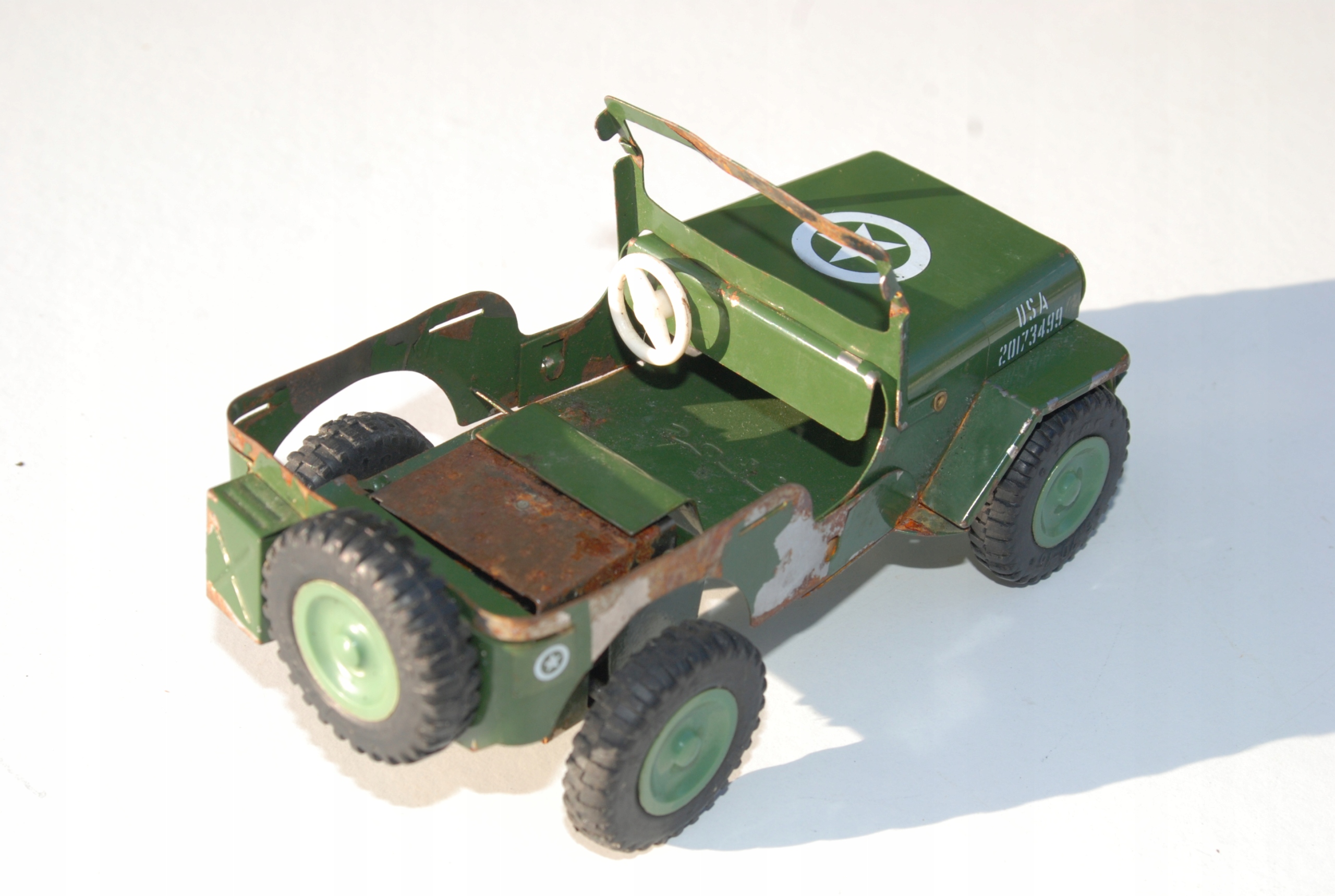 Старий іграшковий автомобіль Jeep Willis Ites США Армійський металевий жерстяний пам’ятник Антикварний предмет колекціонування Унікальний Чехословаччина