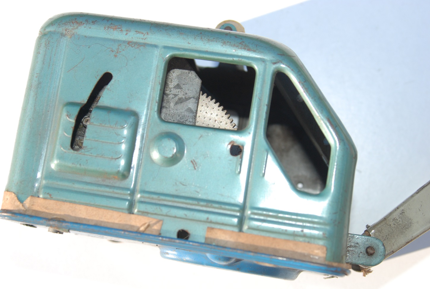 Стара іграшка олов'яної кабіни антикварного пам’ятника рамки олова