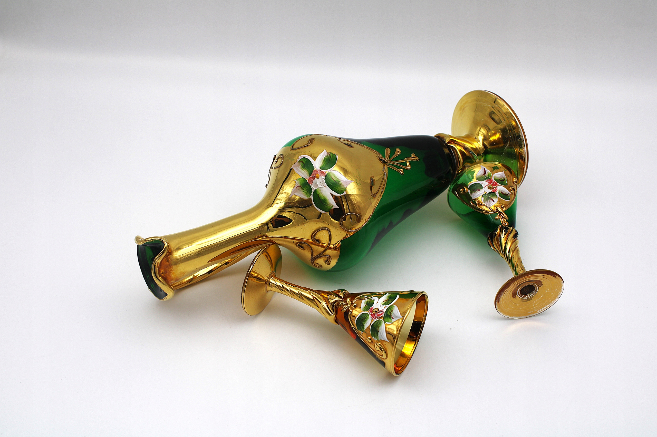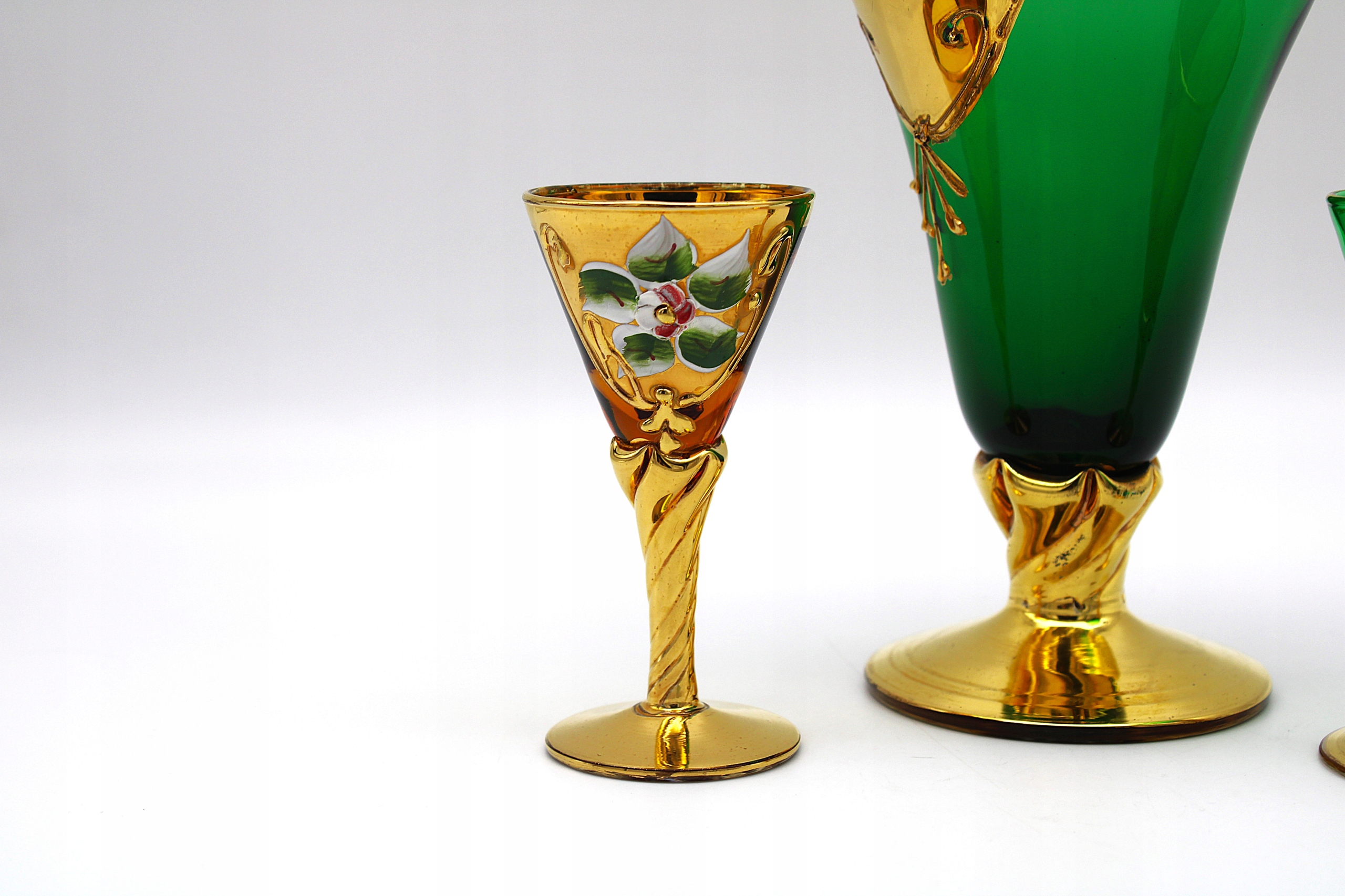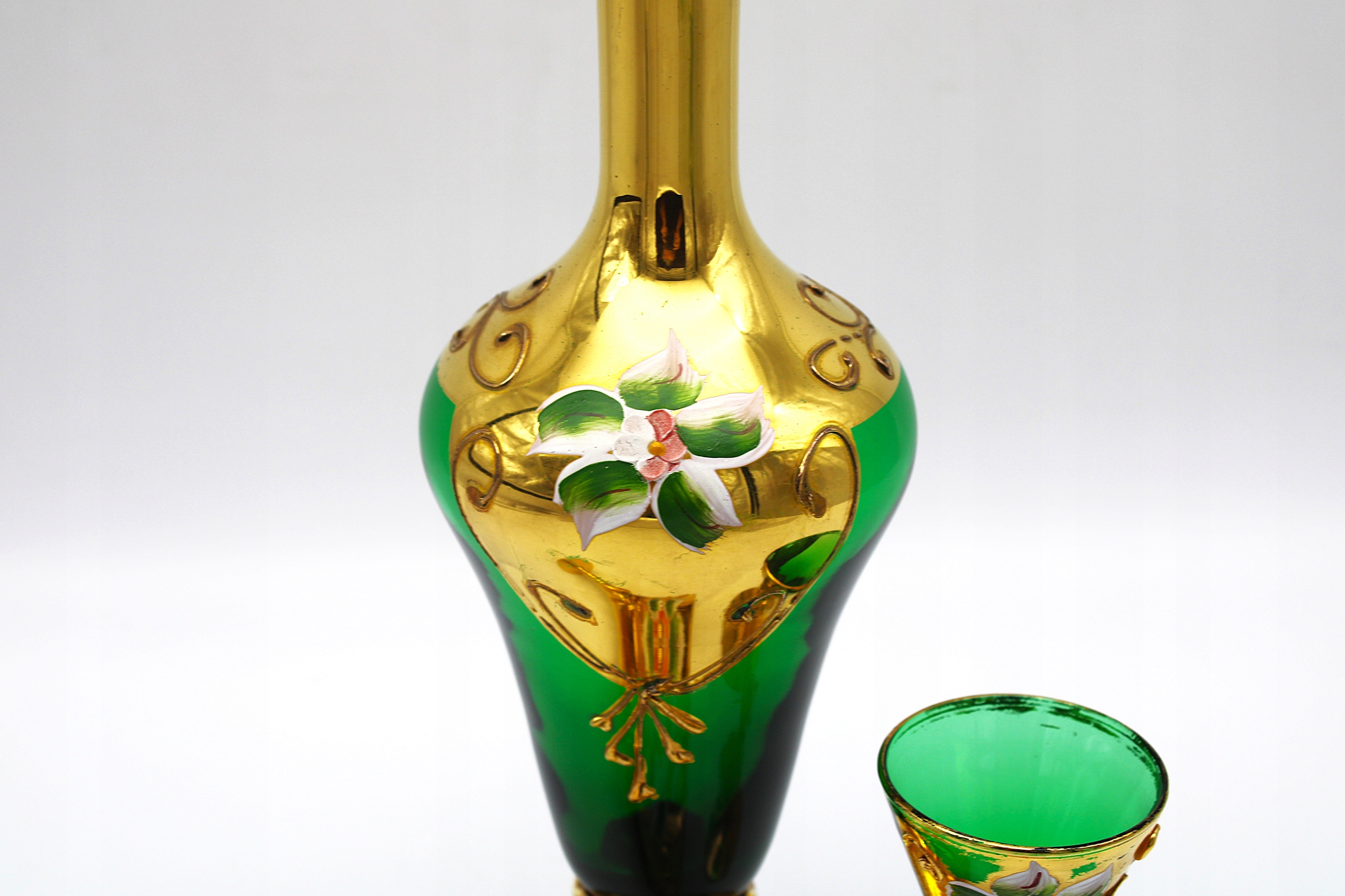 Я рекомендую стару карафе + дві скляні скляні богемії Старого Чехословакії LAT -70 XX -W. Стен, такий як на скануванні дуже хорошого скла, має природні тимчасові потертості при позолоченні та не пробки для кальфеатичного