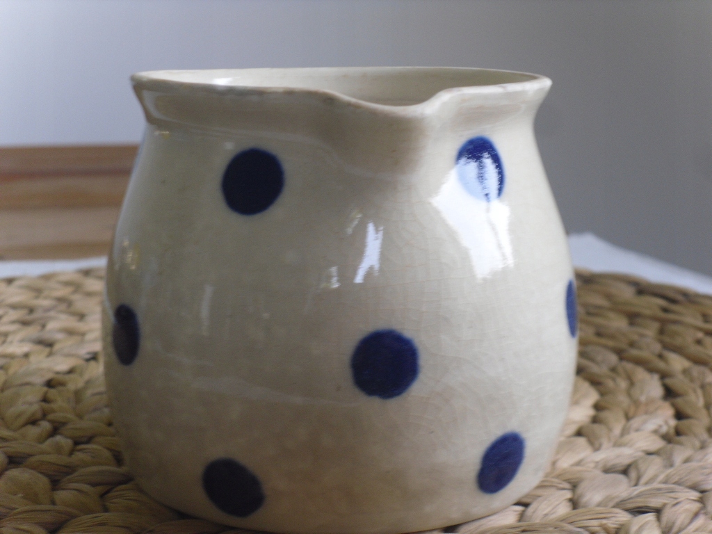Ласкаво просимо на мій аукціон. На аукціонах я зазвичай пропоную вам речі періоду Польської Народної Республіки. На даному аукціоні пропоную ОРИГІНАЛЬНУ керамічну кружку, а точніше молочницю. Вся чашка в досить хорошому стані, лише невеликі пошкодження по краях і тріщини по всьому. Кружка вимита, її можна поставити прямо на полицю або готову до використання. Колір білий, старий і темний, з кобальтово-синіми крапками. На фото все видно. /див. фото/