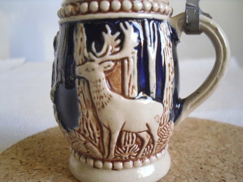Старий керамічний кухоль, маленький кухоль, колекція, кришка, жерсть ПІДПИС 3117