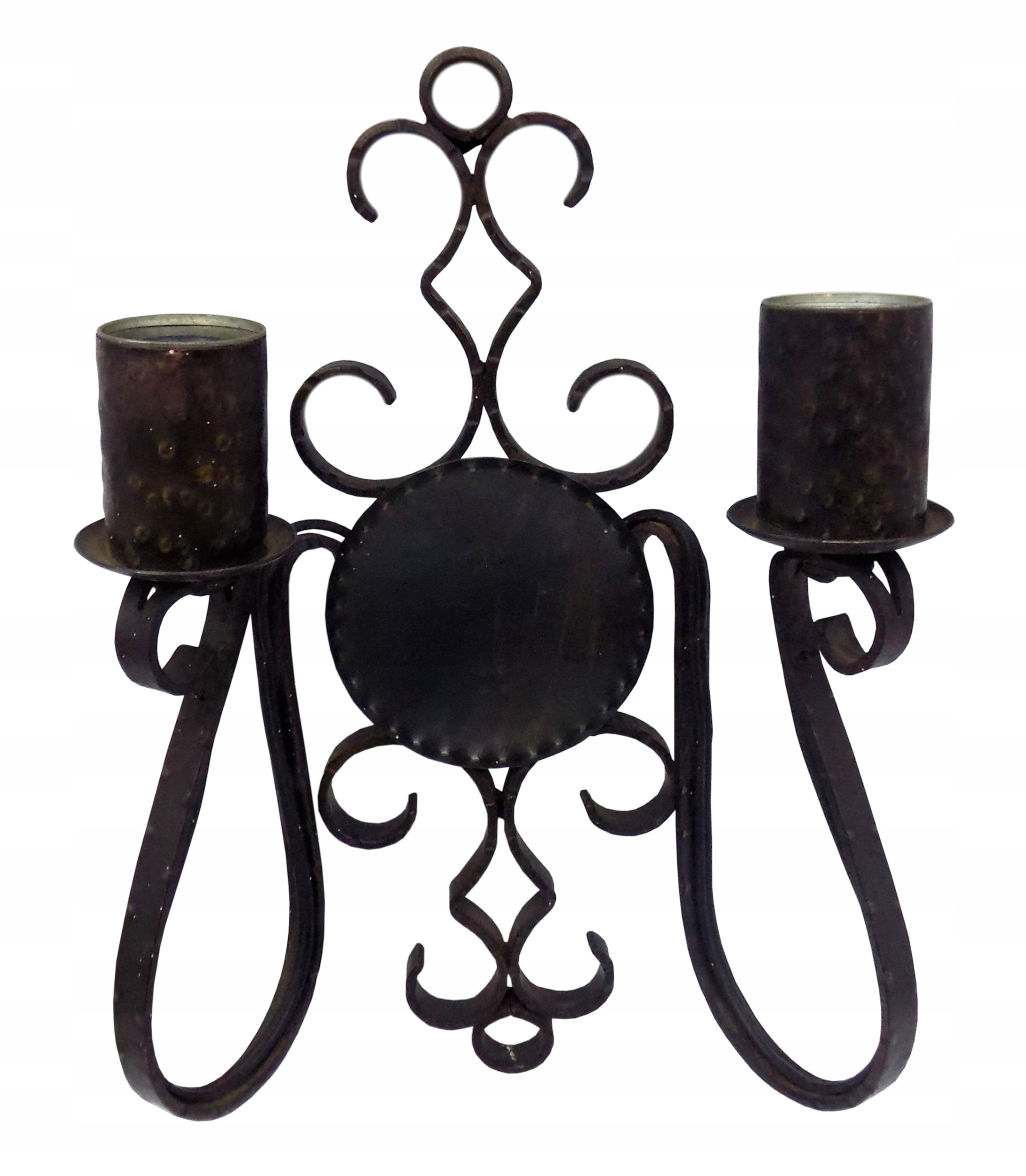 Старий, кований підвісний настінний світильник часів Польської Народної Республіки. Ефективний. Сліди використання. Розміри; висота 31 х 22 х 9 см.