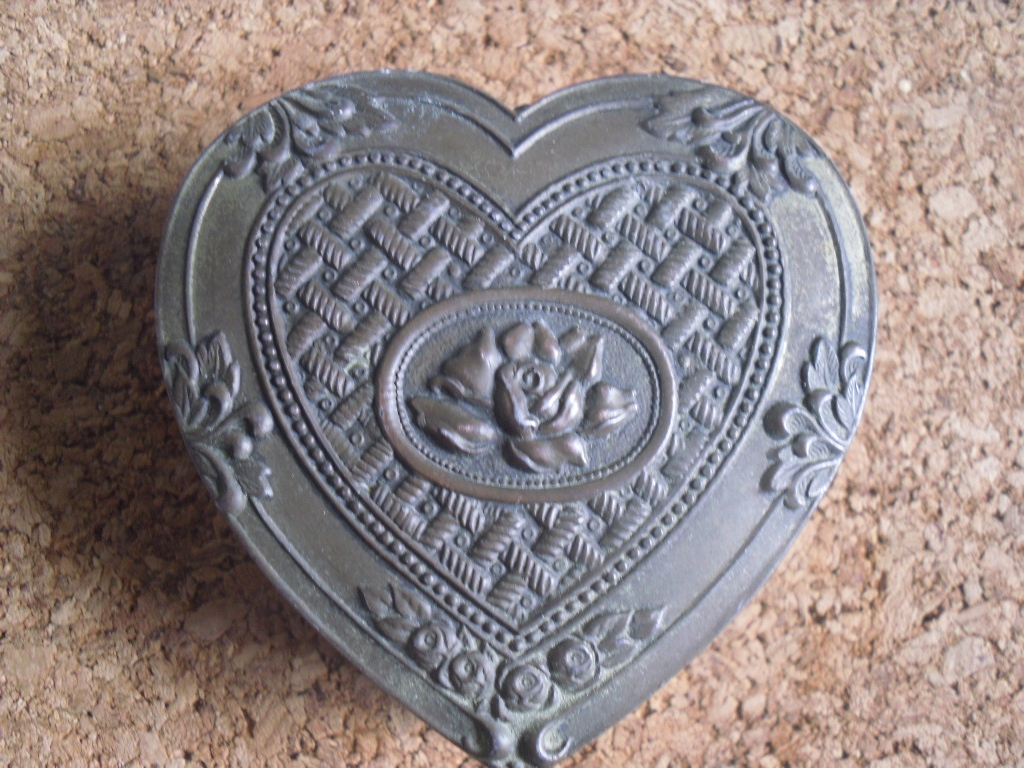 Привіт. На своїх аукціонах я зазвичай пропоную предмети з періоду PRL або старше. На цьому аукціоні я пропоную красиву маленьку, схожа на латунну коробку для серця, красиво прикрашена мотивом троянди для ювелірних виробів тощо. Підписаний на дні Японії. Опуклі, як і 3D, відчувають себе під пальцями. Плеєрко в дуже хорошому стані, ніжні потертості, які дають йому лише чарівність, без шкоди. Матеріал всередині для очищення, однак, - це цілий прекрасний бордовий/ темно -червоний колір. Прекрасна прикраса для туалетного столика, див. Фотографії.