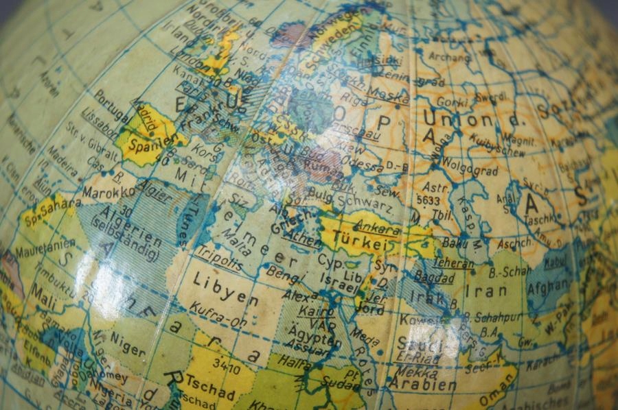 Старий маленький глобус на політичному столі Erdglus!