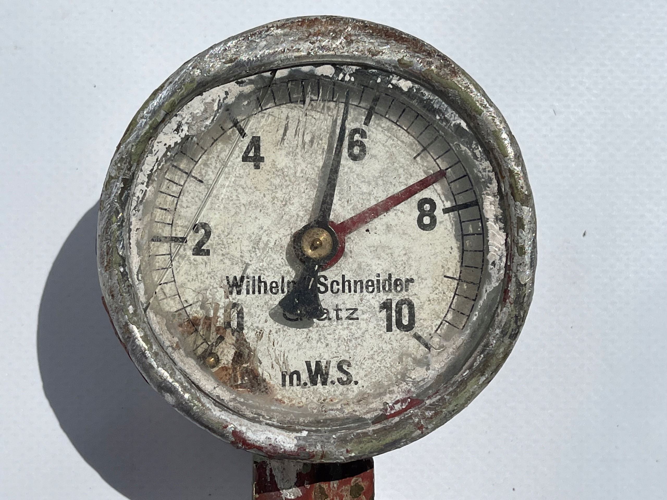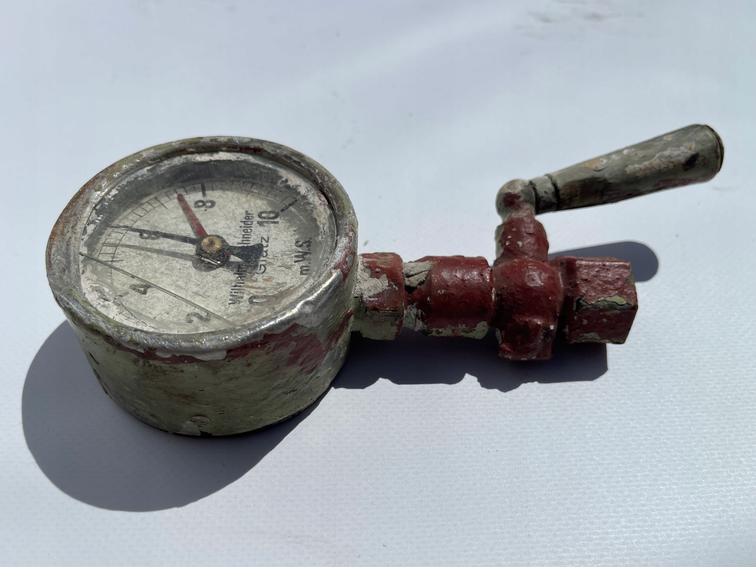 Предмет продажу старий, довоєнний манометр. Цікавий екземпляр з підписом WILHELM SCHNEIDER GLATZ m.W.S. - довоєнний Клодзко.