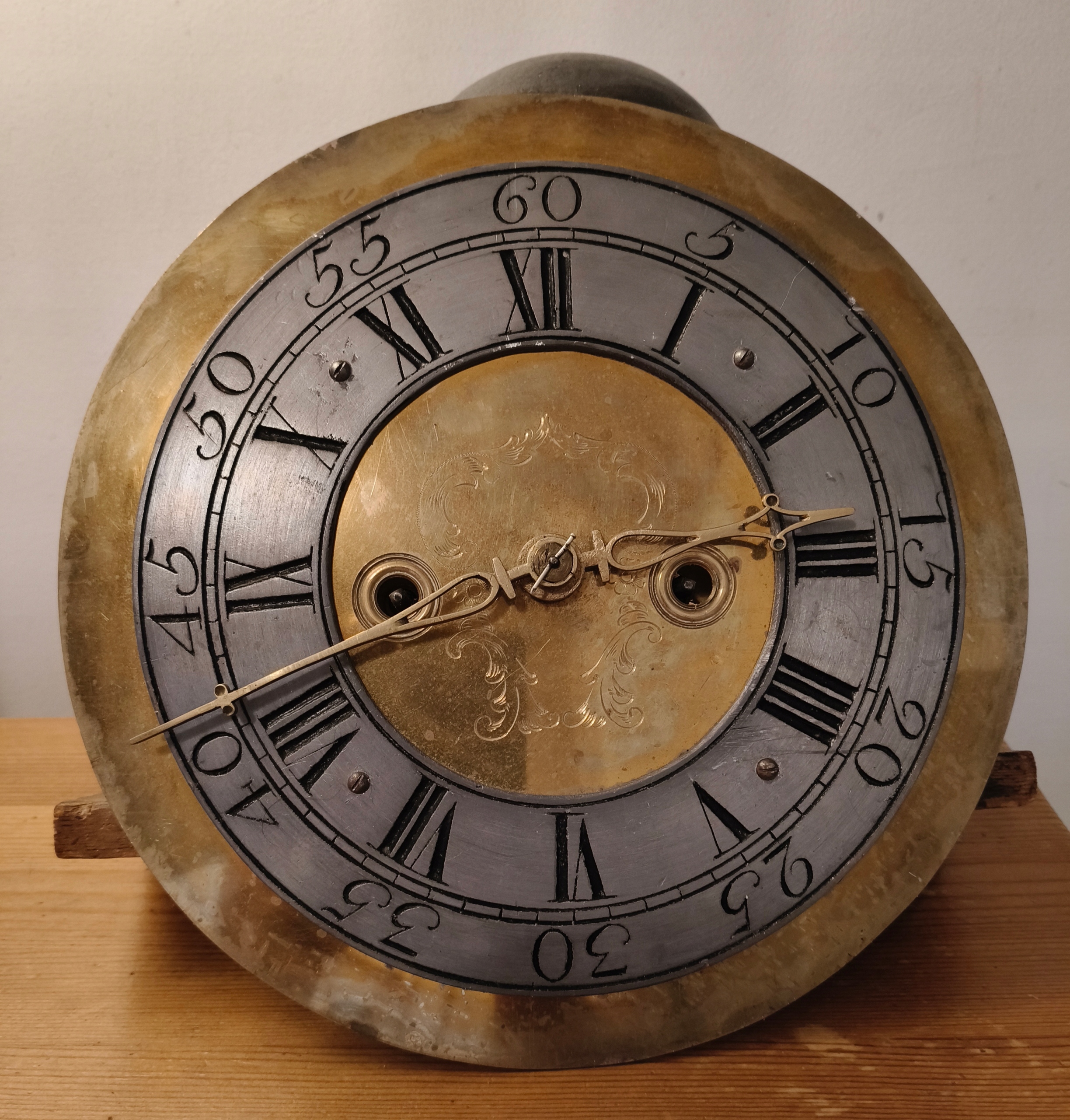 Механізм стоячого годинника. Гравірований і пофарбований в руку щит. Немає маятника та ваги
