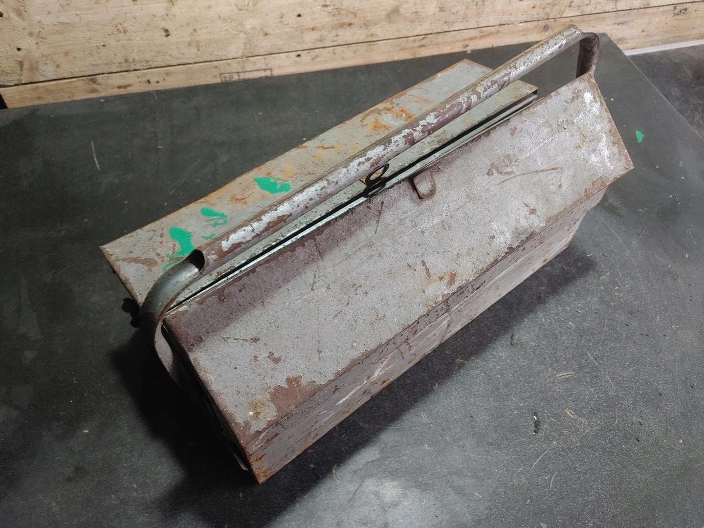 СТАРИЙ МЕТАЛЕВИЙ ЯЩИК ДЛЯ ІНСТРУМЕНТІВ, РОЗШИРЮЄТЬСЯ, ЦІЛЬНИЙ, 36X17X14