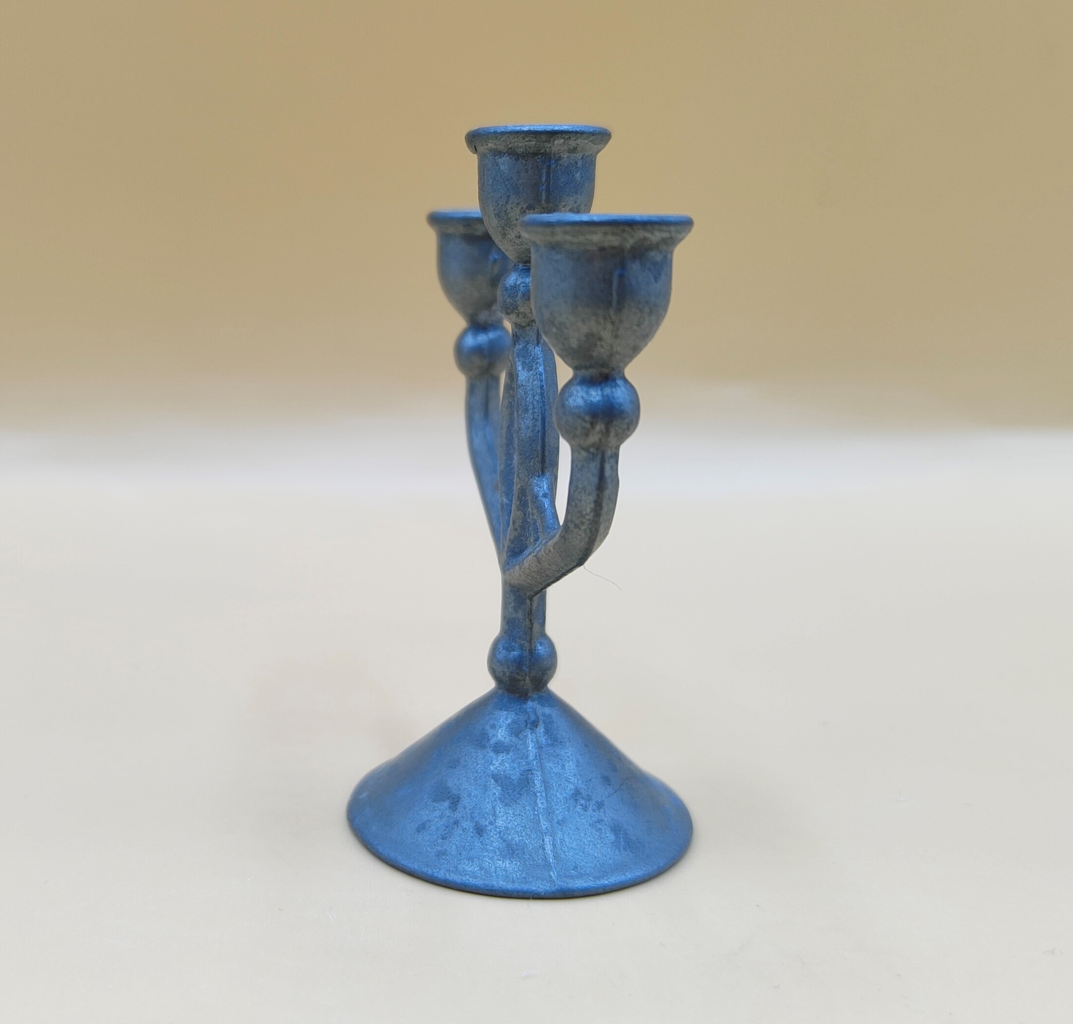старовинний, крихітний, статуетка, потрійна свічник, олово мініатюра,