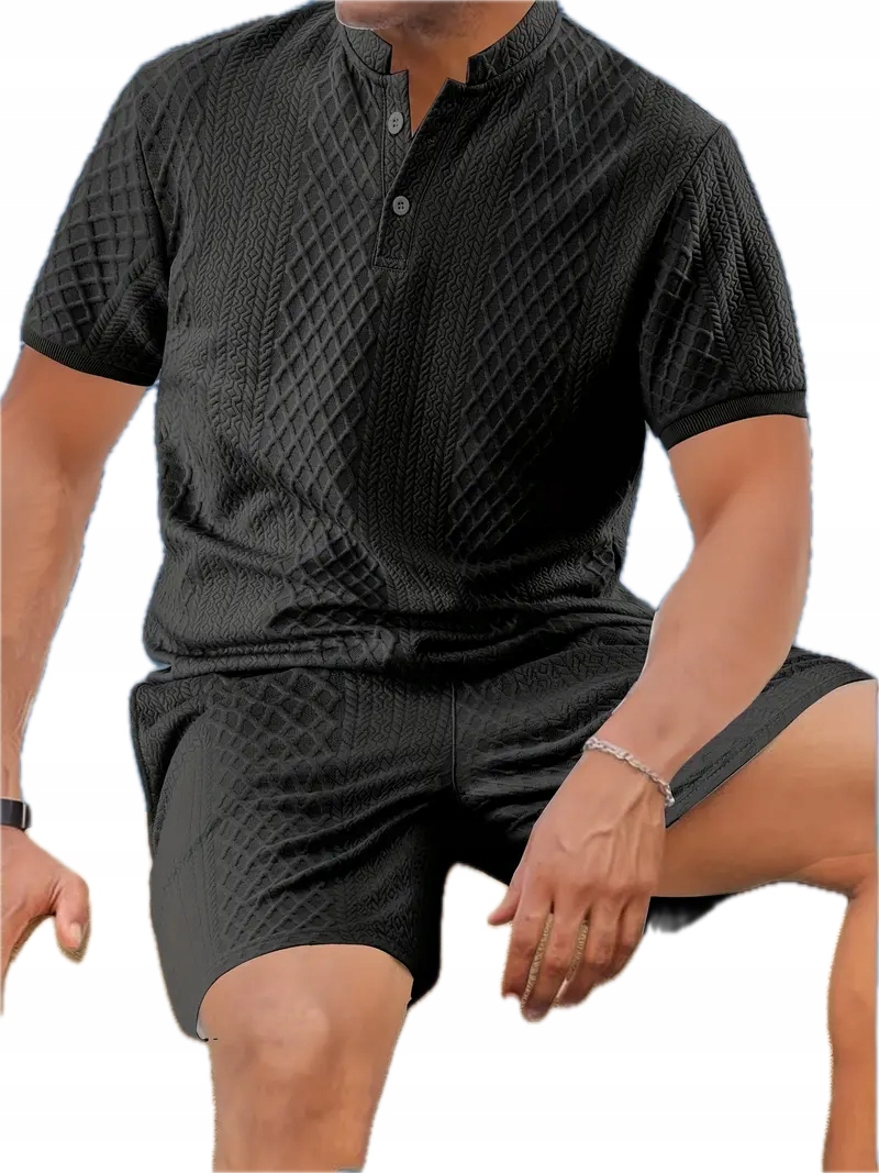 Літні літні грошові набори - сорочка з коротким рукавом Henley Shorts - Чорний