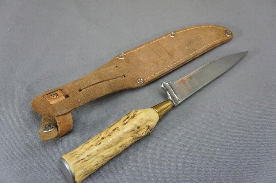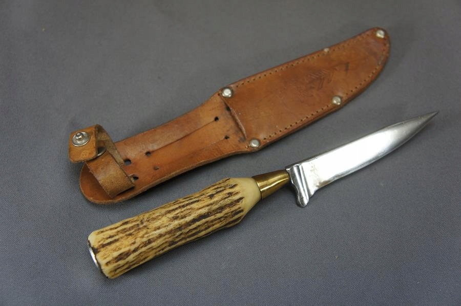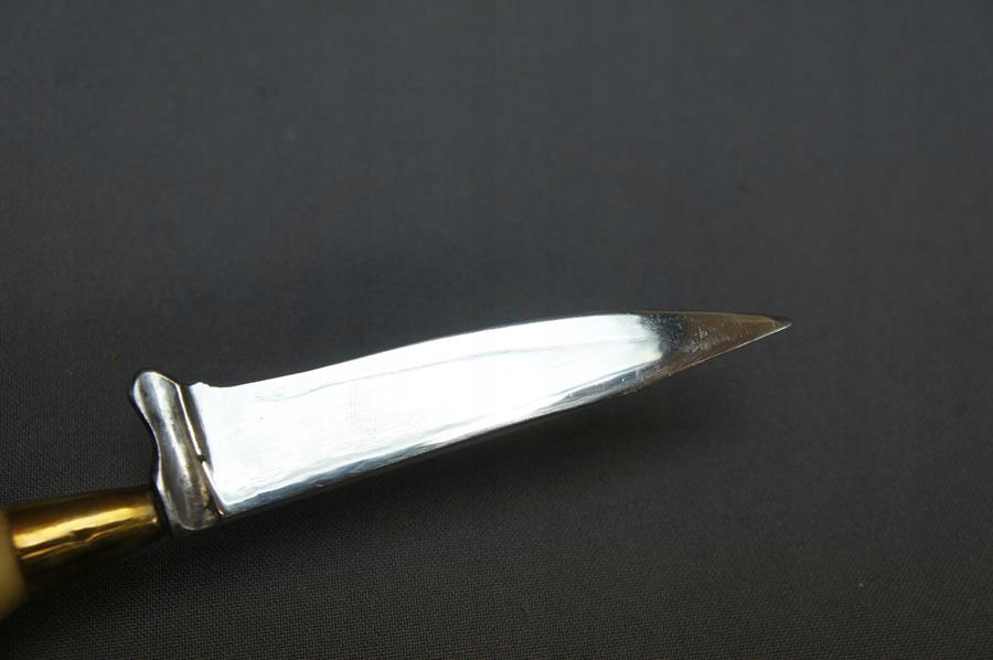 - Виготовлений з металу, рогова ручка, шкіряний чохол.