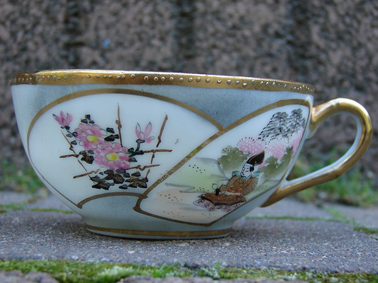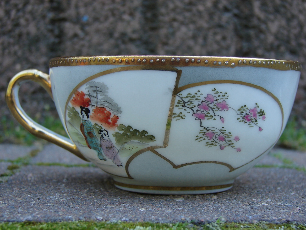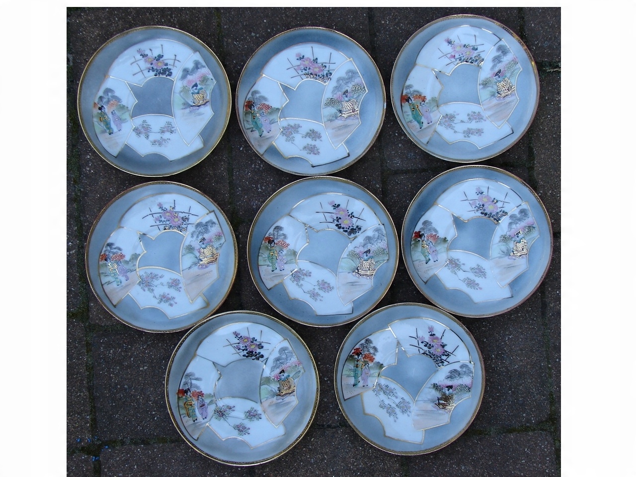 Старий набір 8 чашок + 8 блюдець, фарфор з ручним розписом, Японія
