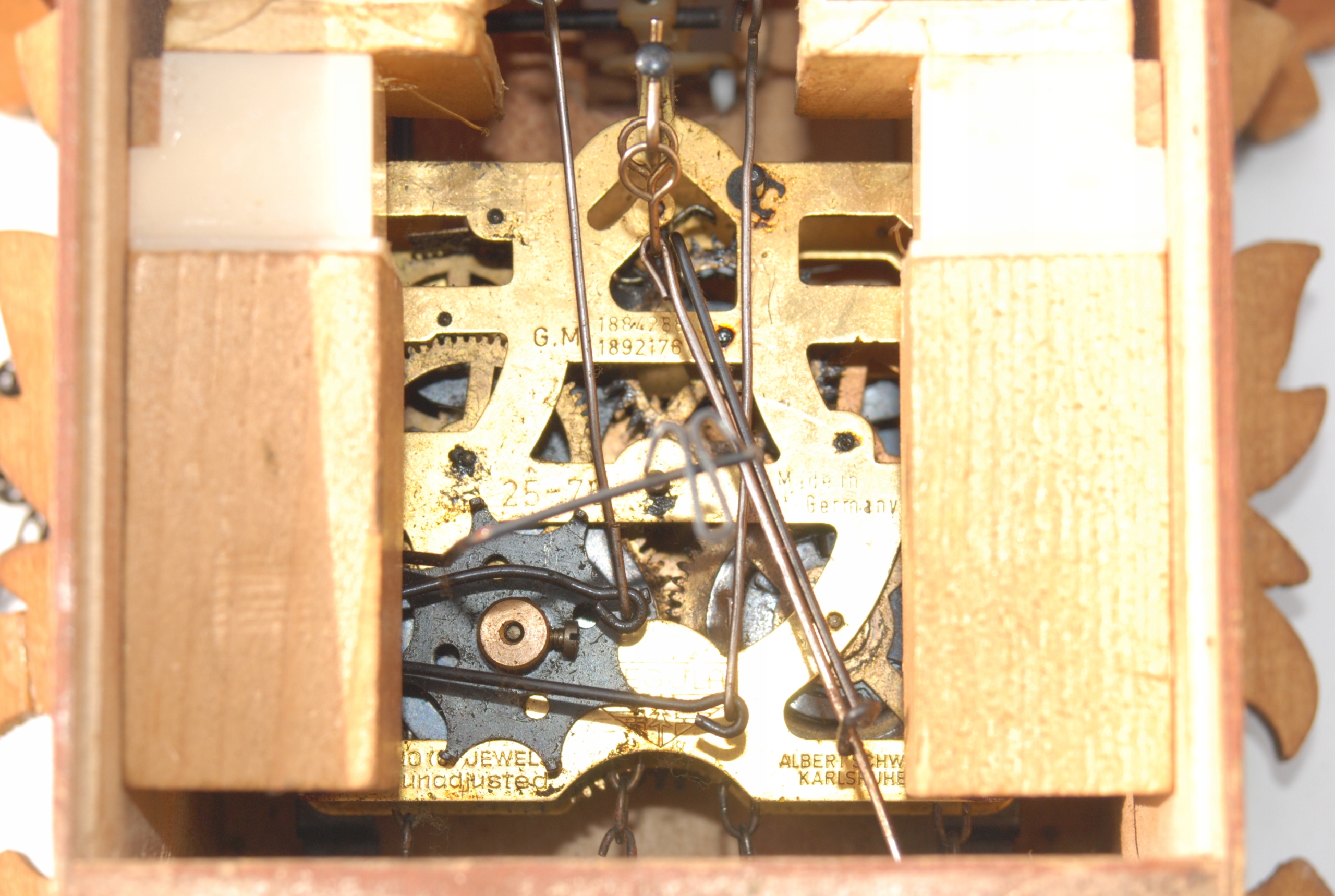 Ремонт, що продається як пошкоджений, механізм не перевірявся, птах із зозулі розпущено Кукулку, спливаюча дверцята, різьблена птах у верхній частині має делікатний дефект