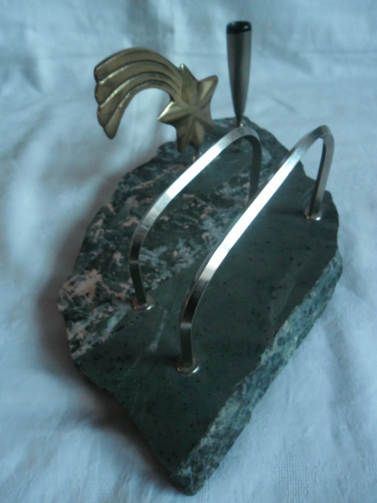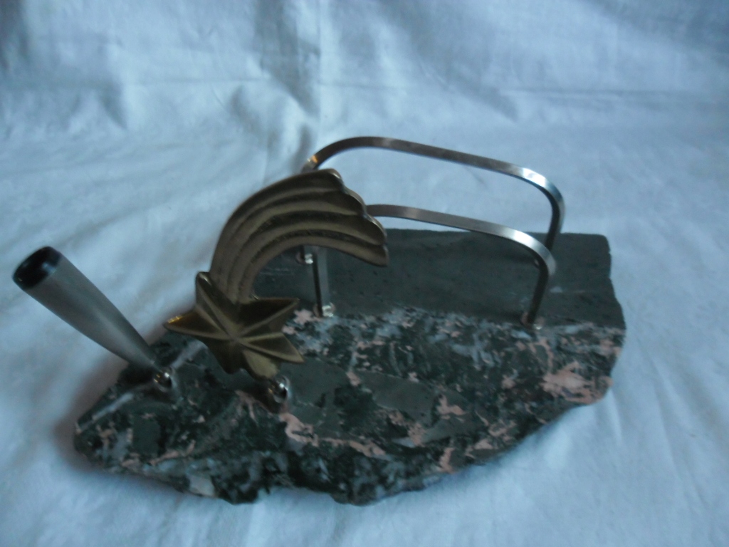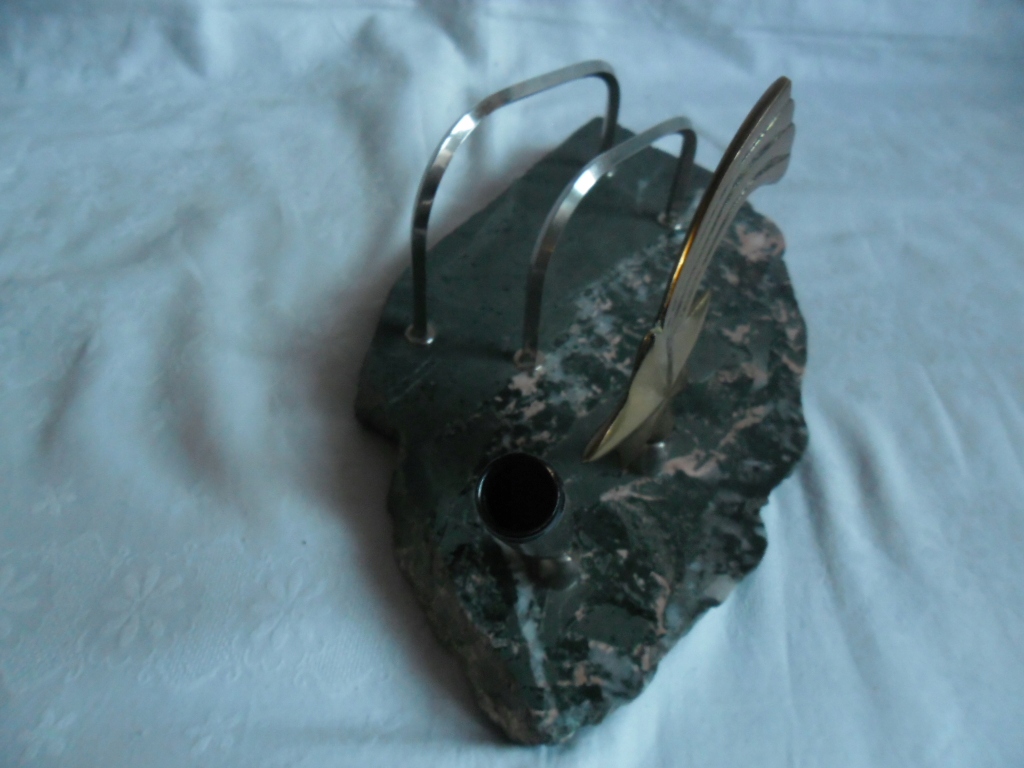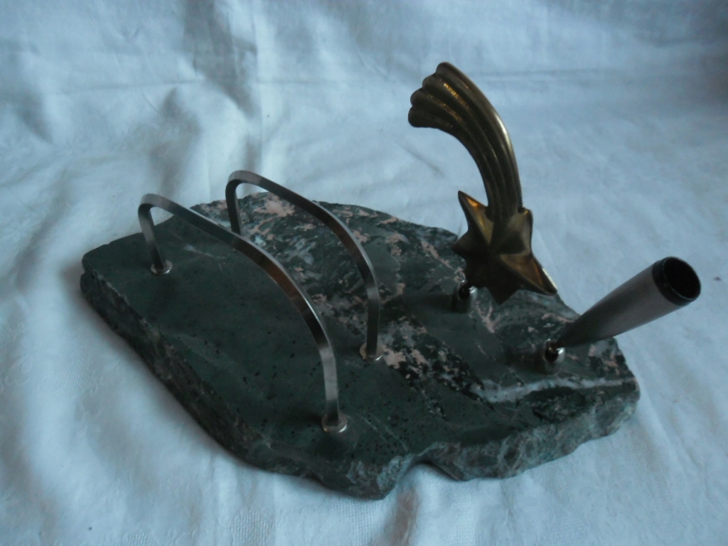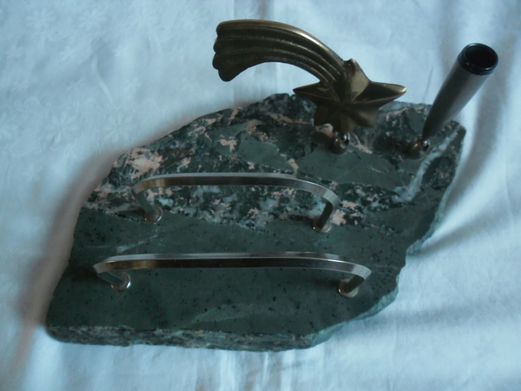 ГАРНИЙ СТАРИЙ ПІДПИСАНИЙ ОРГАНІЗАТОР. ОСНОВА - ДЕЯКИЙ КАМІНЬ, мабуть, ЗЕЛЕНУВАТИЙ МАРМУР, РЕШТА - МЕТАЛ. ЗБЕРЕЖЕННЯ ДУЖЕ ДОБРЕ. ДЕТАЛІ ВИДНІ НА ФОТОГРАФІЯХ.