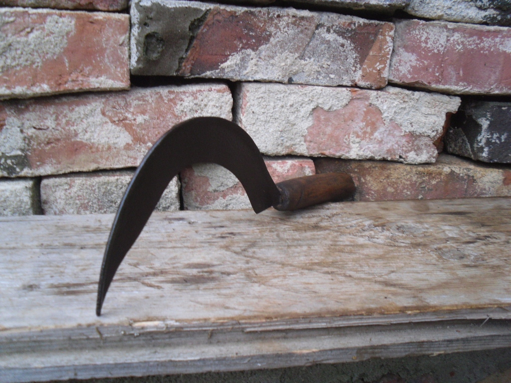 Старий оригінальний серп, косильний серп, коса, малий серп, ПРЛ, дерев'яна ручка