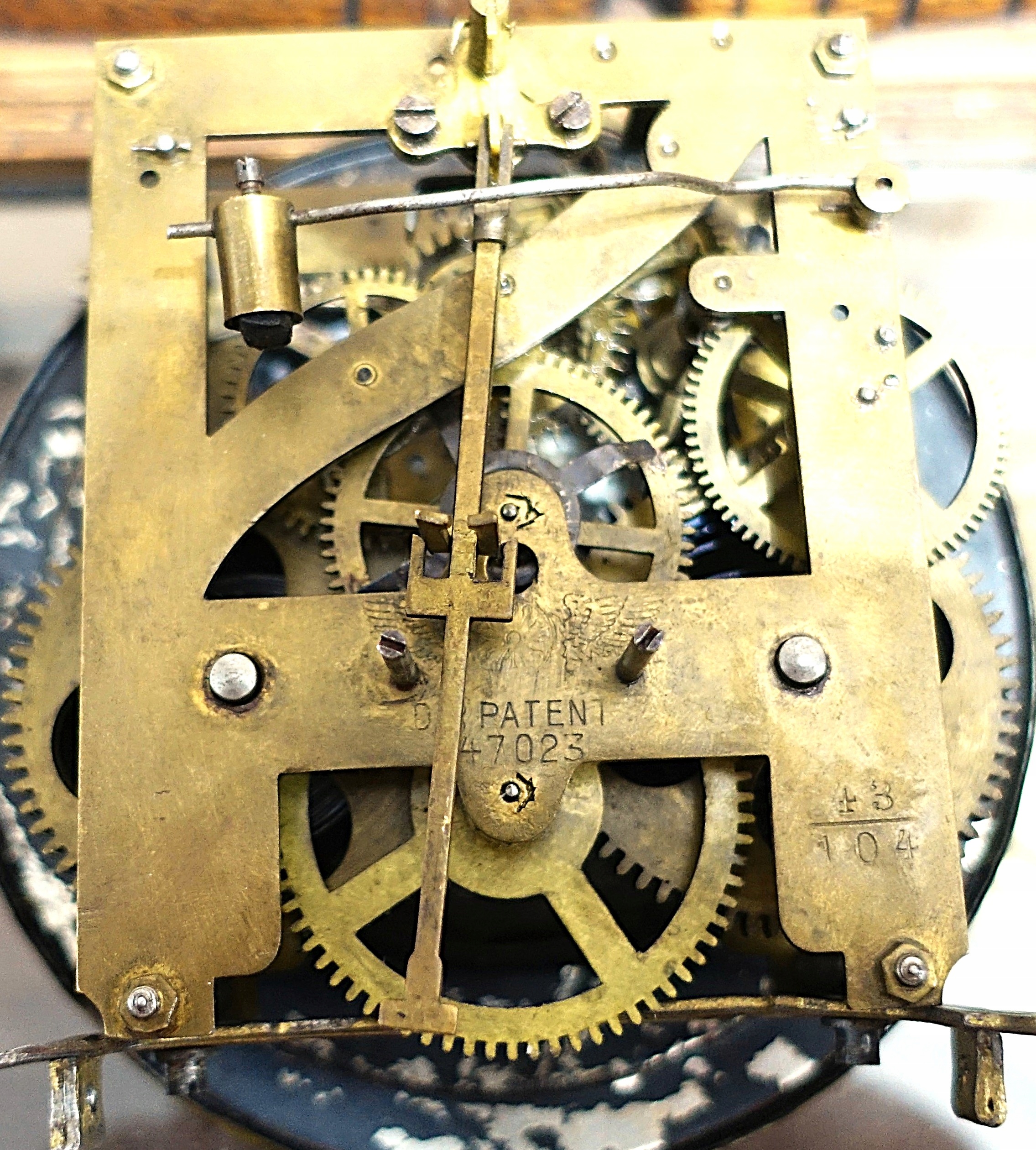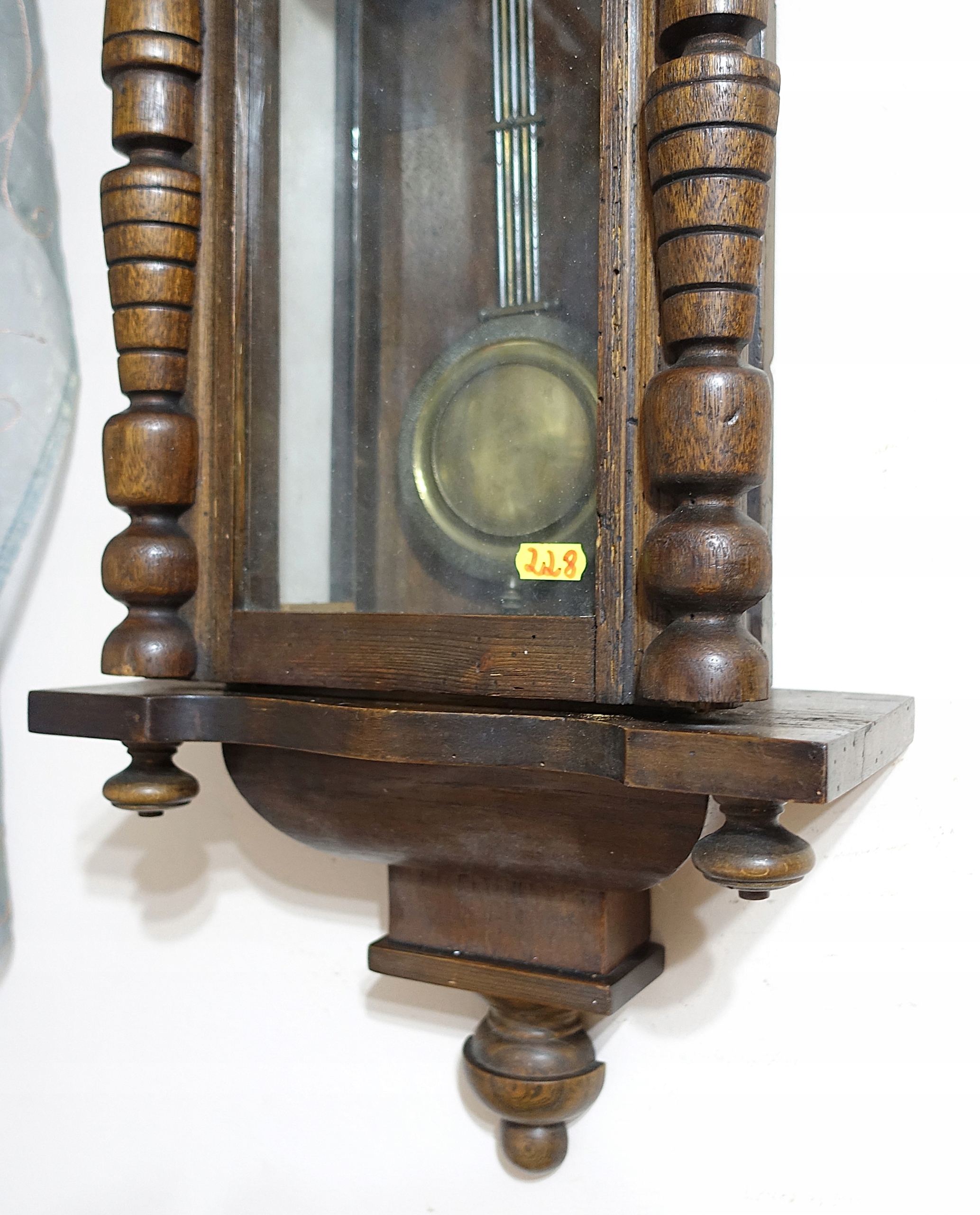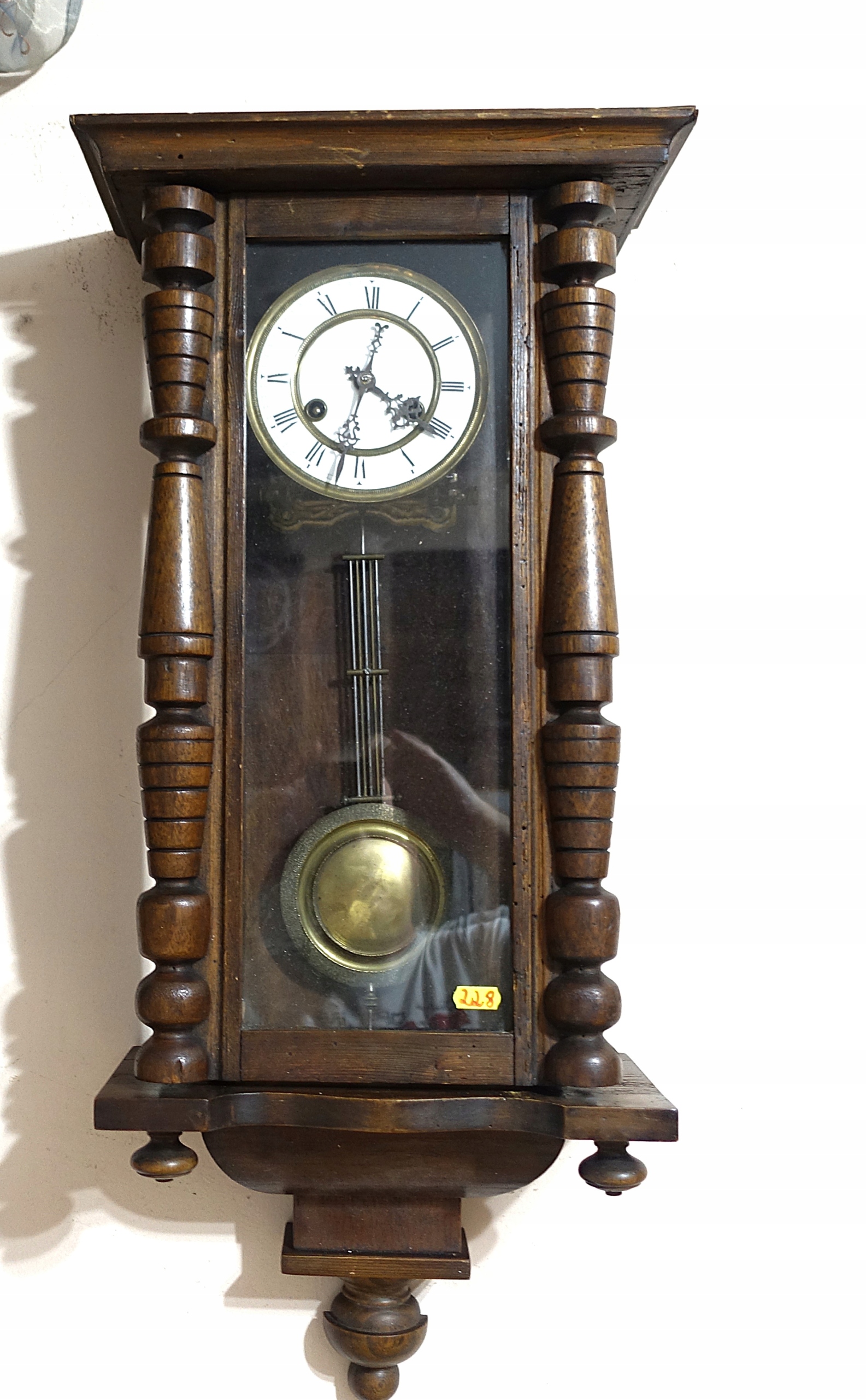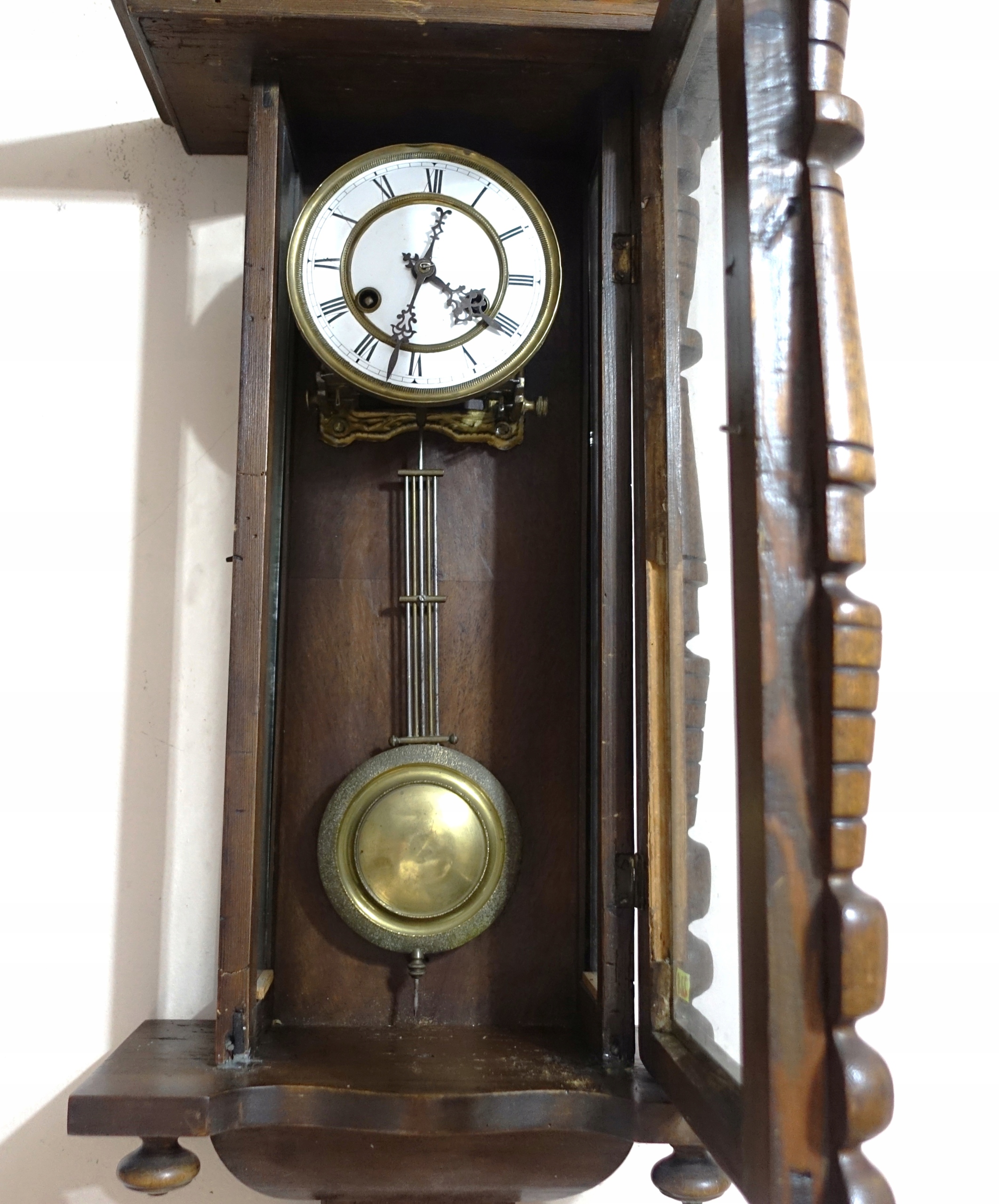 Ходова пружина заводиться без проблем, а бійна пружина ціла, але ключ підстрибує, підозрюю, що собачку, яка блокує пружину під час заводу, потрібно замінити або відремонтувати, після висіння на стіні механізм працює (механізм був перевірено без маятника), маятник це для годинника, але я не знаю, чи він оригінальний, я не знаю, чи є ще якісь несправності чи втрати, тому що я не перевіряв, годинник висить на стіні як прикраса багато років, він не працював, тому він точно потребує обслуговування, чищення та змащення